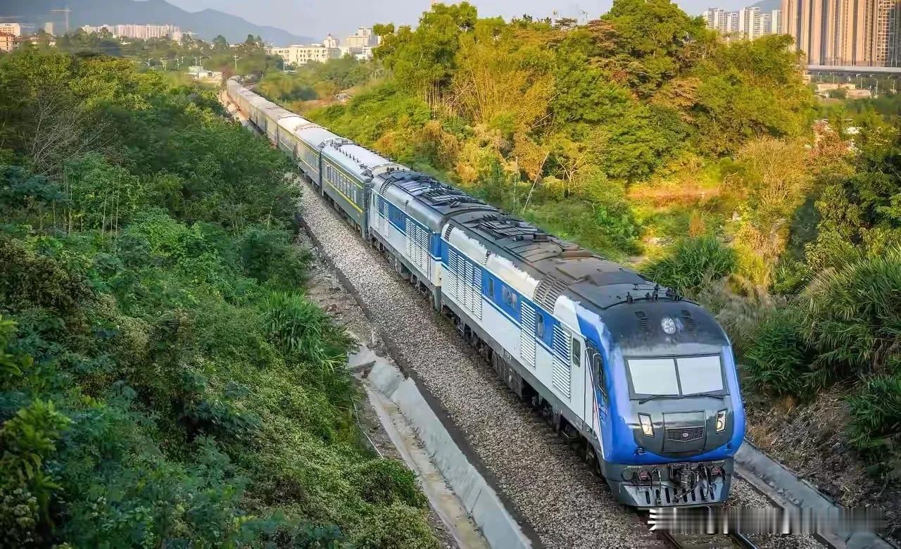 DF11G内燃机车牵引出海直特列车途径广茂铁路肇庆路段。广茂铁路虽然只是一条单线非电气化铁路,但在过去很长的一段时间里,它却承担着珠三角连通海南省的重要铁路通道。因此每天有好几趟直特列车往返在这条线路上,也就让这条线路有了DF11G这种准高速内燃机车。但在2026年一季度调图之后,三趟直特列车将改道江湛铁路行驶,也将直接由电力机车牵引至湛江西。到时候广茂铁路上的旅客列车会大幅减少,猪头机车也更难再看到了。