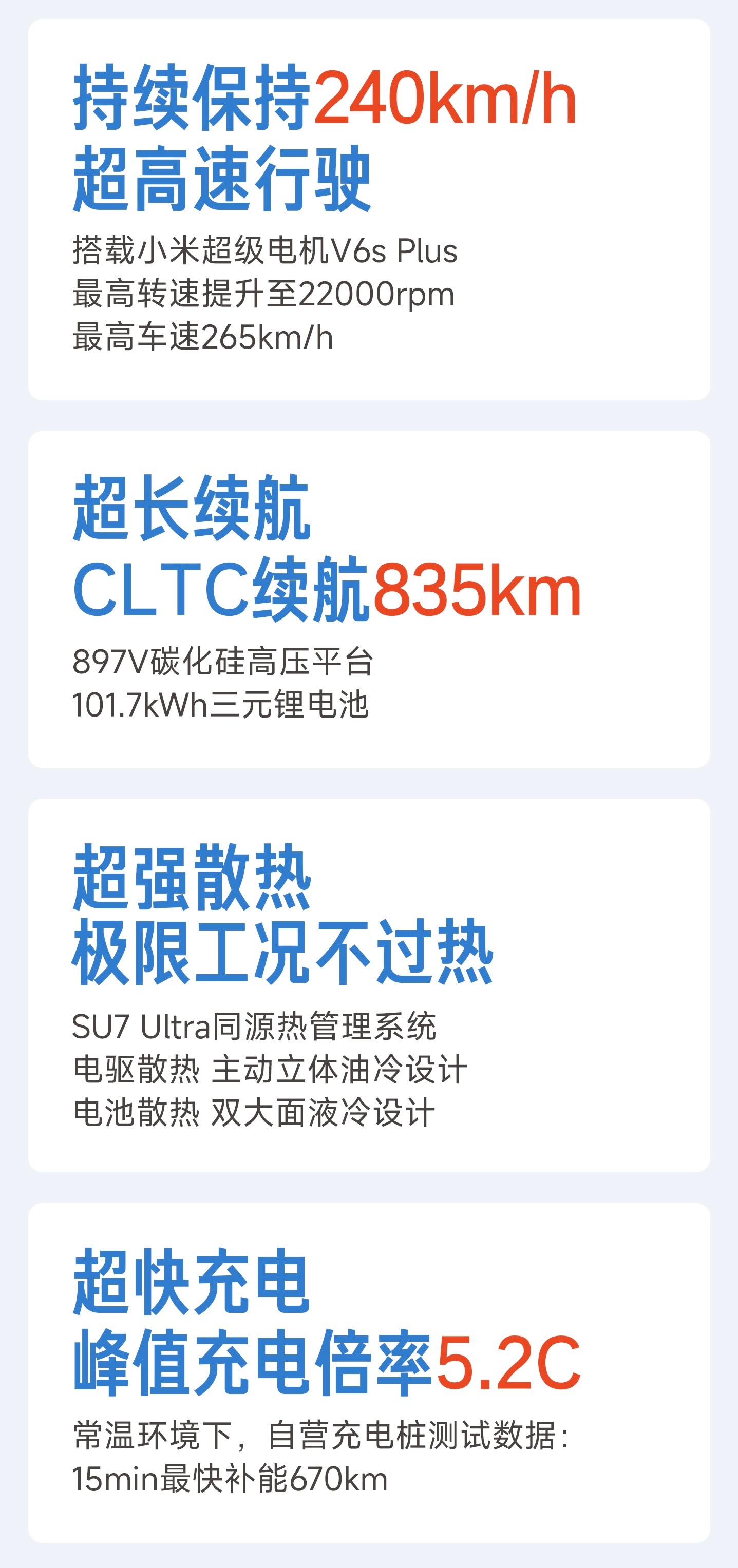 看了新一代SU7 Max的实测,这三电性能确实猛。24小时跑了4264公里,持续保持240km/h还没过热衰减,这可是拿短跑速度在跑马拉松啊。加上5.2C超充和835km续航,这就很显功力了。敢这么极限折腾还不出岔子,日常用车的可靠性估计是没得说,这就很稳。小米新SU7刷新24小时耐力挑战纪录