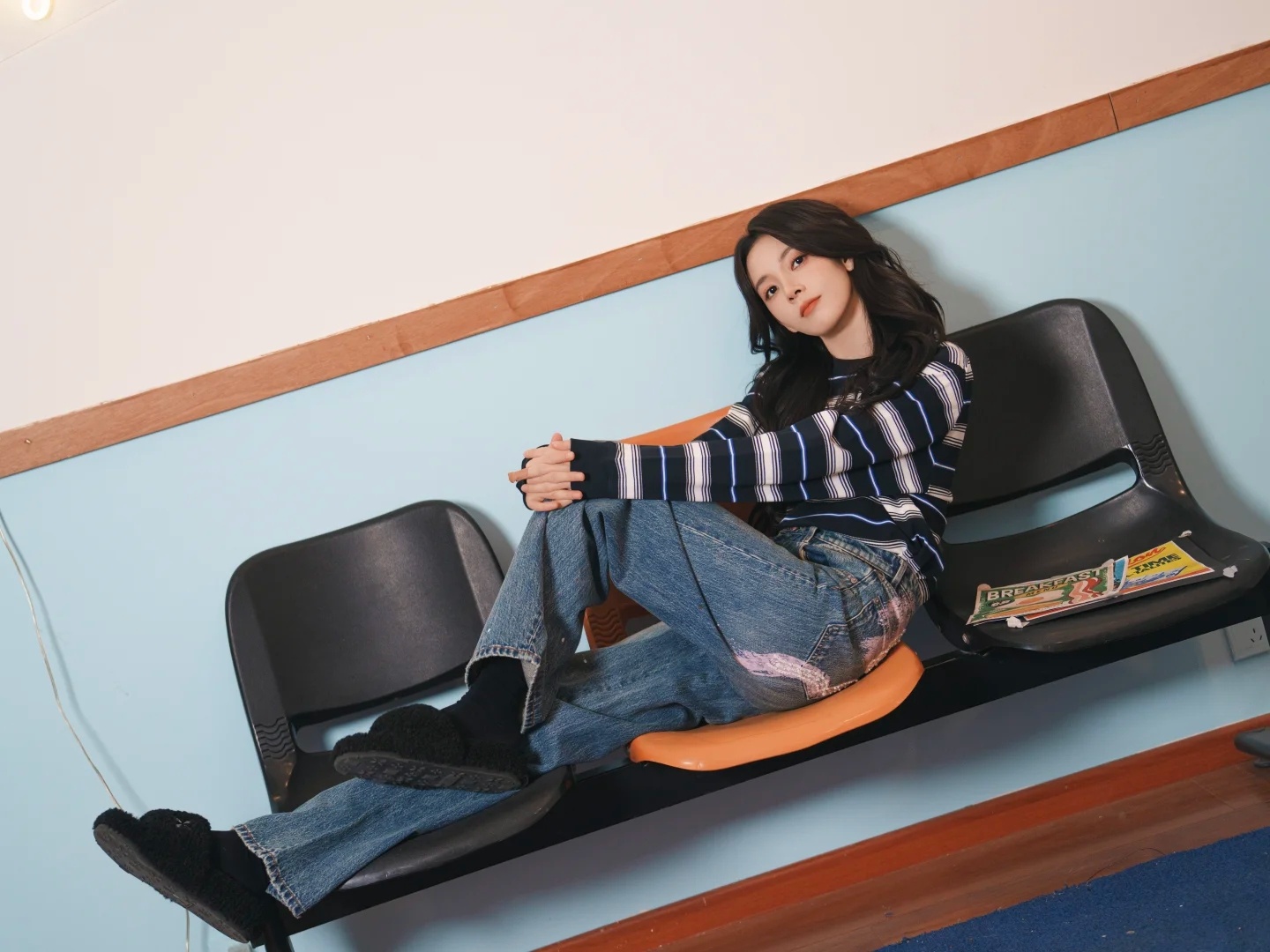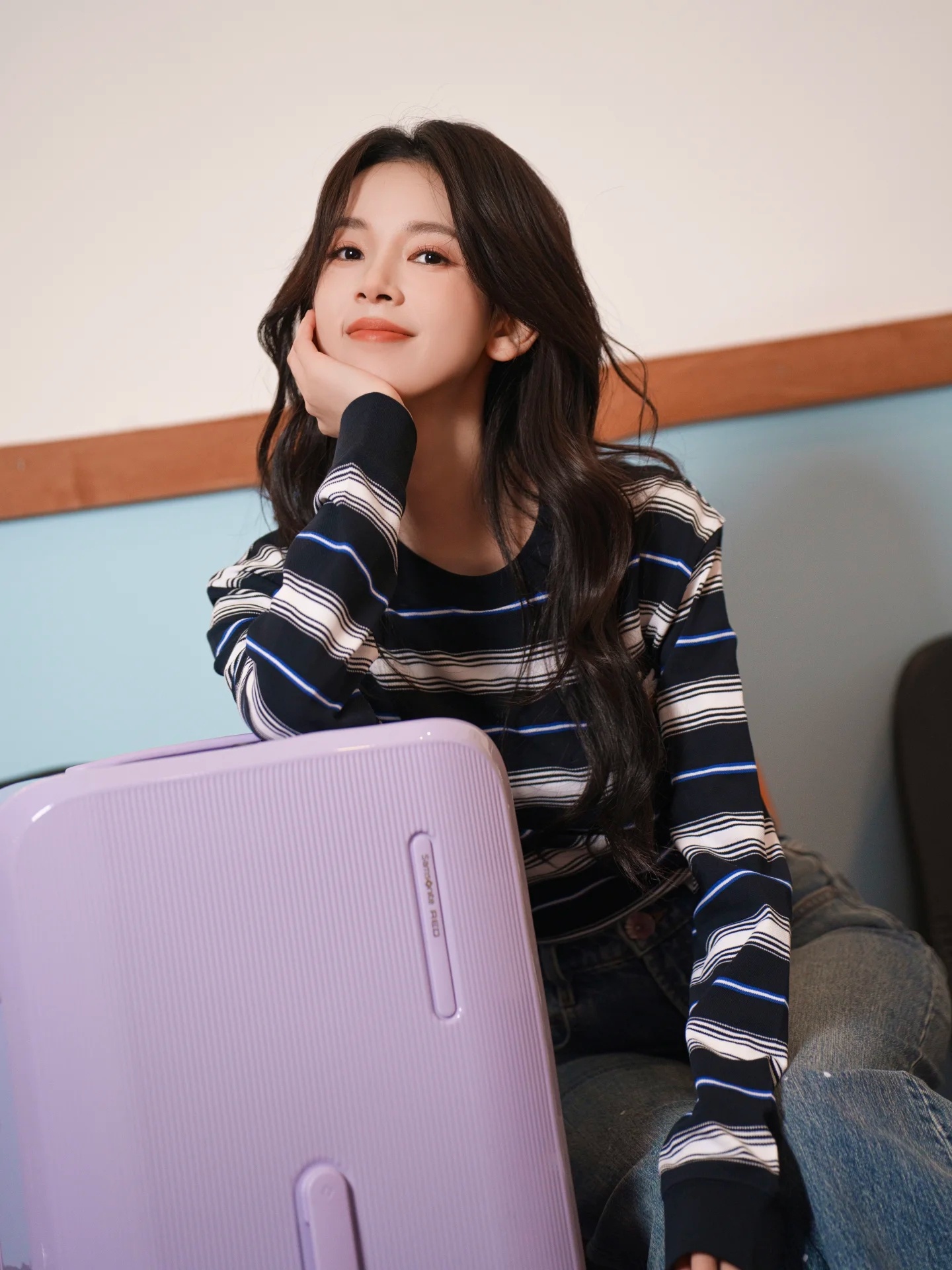 周也身穿赫本风黑裙亮相天猫欧莱雅直播活动