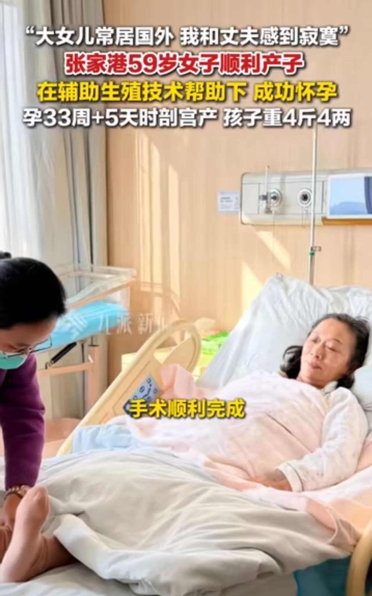 苏州59岁女子诞下4斤4两男婴,刷新了当地孕妇生产年龄纪录。女子:“大女儿定居国外,我和丈夫感到寂寞,就萌生了再生一个但念头!”网友:“本来遗产女儿十拿九稳,现在估计没她份了……