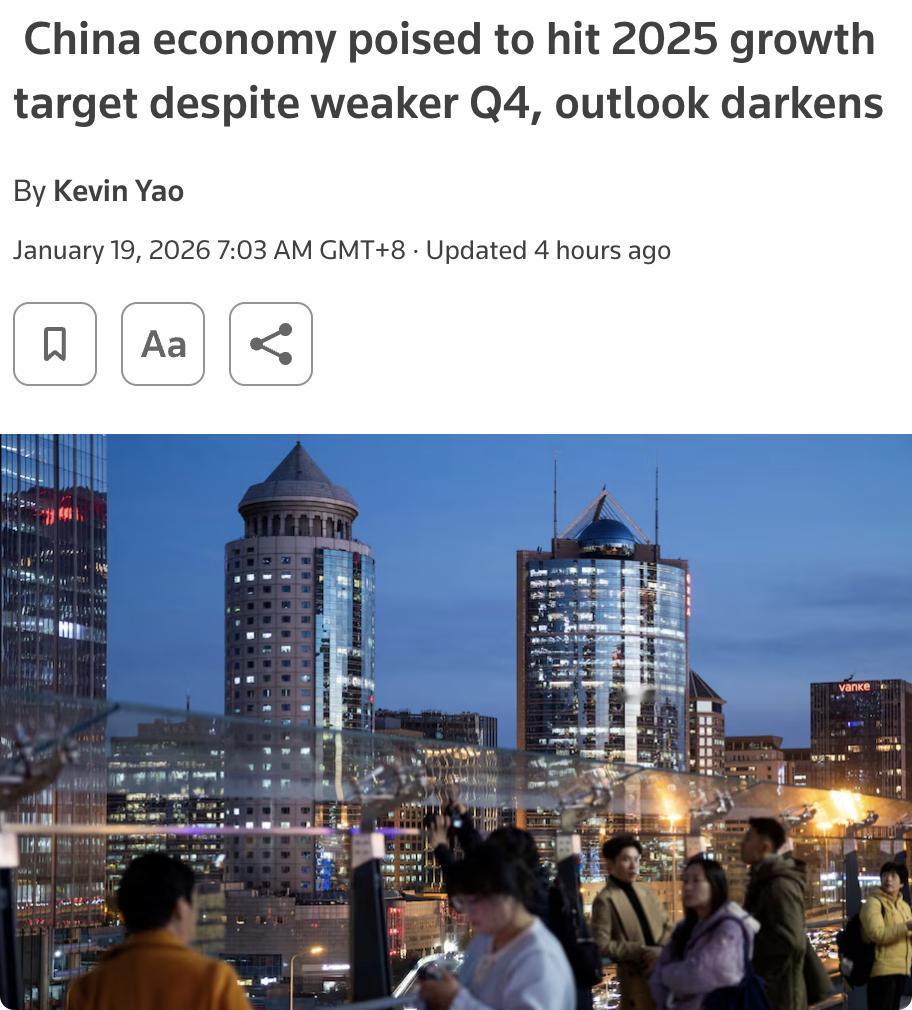 外媒:尽管四季度增长放缓,中国经济仍有望实现2025年增长目标。 2025年中国经济预计增长4.9%,接近官方约5%的目标,但四季度GDP增速可能降至4.4%。 2025年中国经济表现出较强韧性,部分得益于美国关税低于预期以及出口商向非美国市场转移。然而,2026年经济增长面临贸易紧张局势和结构性失衡的挑战。 中国制造业在2025年推动了经济增长,贸易顺差创纪录。