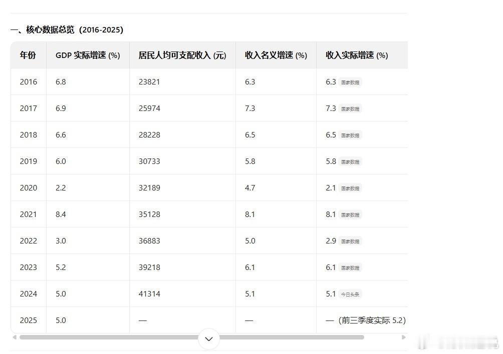 GDP增5%放全球都是不错的。查了一下最近这十年,GDP增速和跟人均可支配收入的增长,其中有六年,收入增长是低于GDP增速的。这就是问题,一个很急迫的问题,如何提高居民收入增长的幅度。