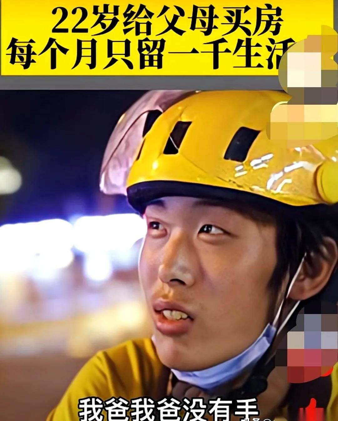 这是一个励志故事。 22岁济南小伙,在北京跑外卖。每个月留1000元生活费,其余的钱全部汇给家里,因为妈妈是聋哑人,爸爸没有手。一年后,他给父母贷款买了房,别人问他对未来的规划,他只是摇头。 孩子,你是父母的全部,是他们身后的山。这么懂事孝顺,就是来报恩的。 不敢想象,1000元在北京生活是一番什么景象。工作强度高,体力消耗大,不但要吃饱还要有营养,现在年青能抗住,时间长了肯定吃不消。如果你倒下了,父母的天就塌了。 所以,父母残疾,生个孩子还是有必要的。