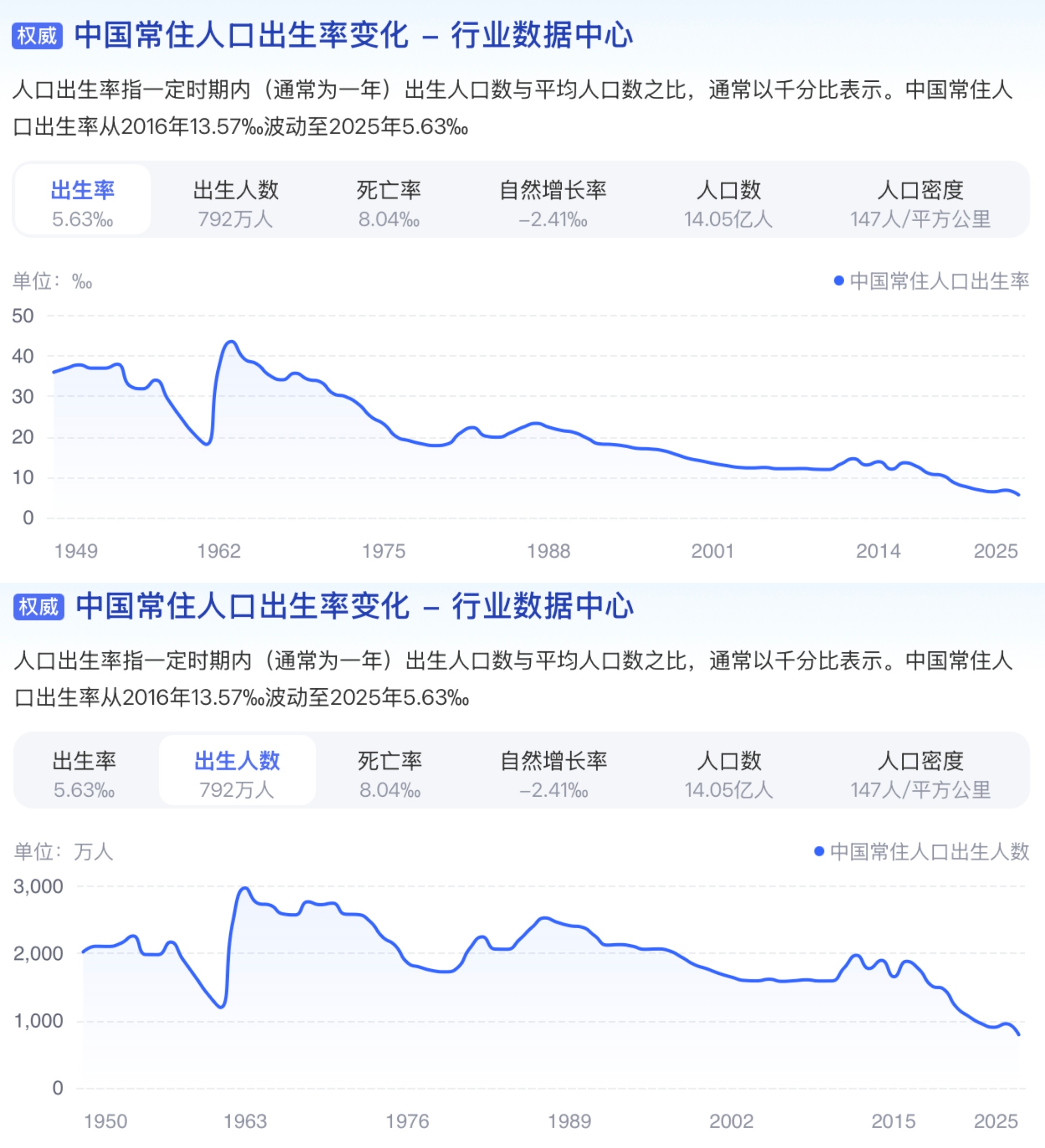 2025年末全国人口140489万人,比上年末减少339万人全年出生人口792万人,人口出生率为5.63‰,出生人口和出生率均为建国以来新低看了一下世界各国的数据,2023年中国是6.39‰、日本是6‰、韩国是4.5‰