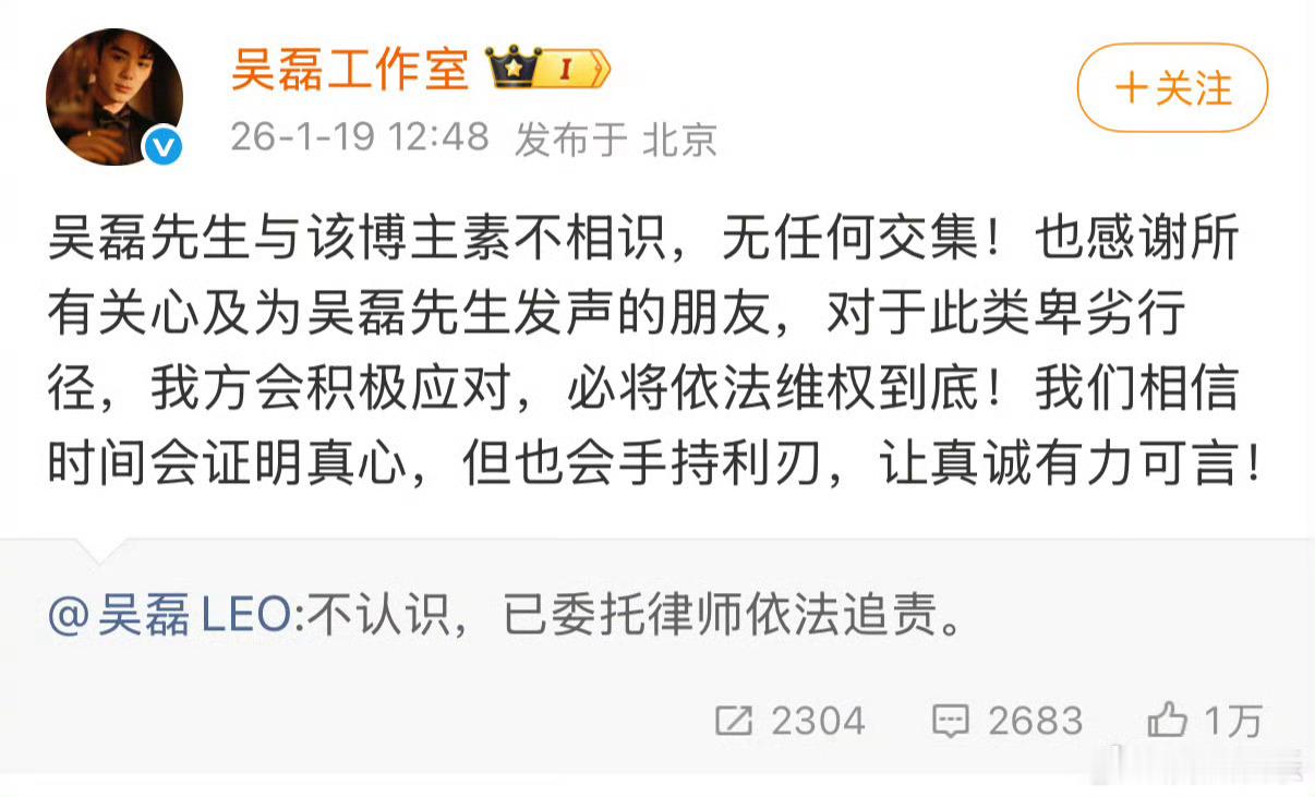 现在网络上传的吴磊床照白珊珊吴磊你欠我的拿什么还吴磊工作室严正声明