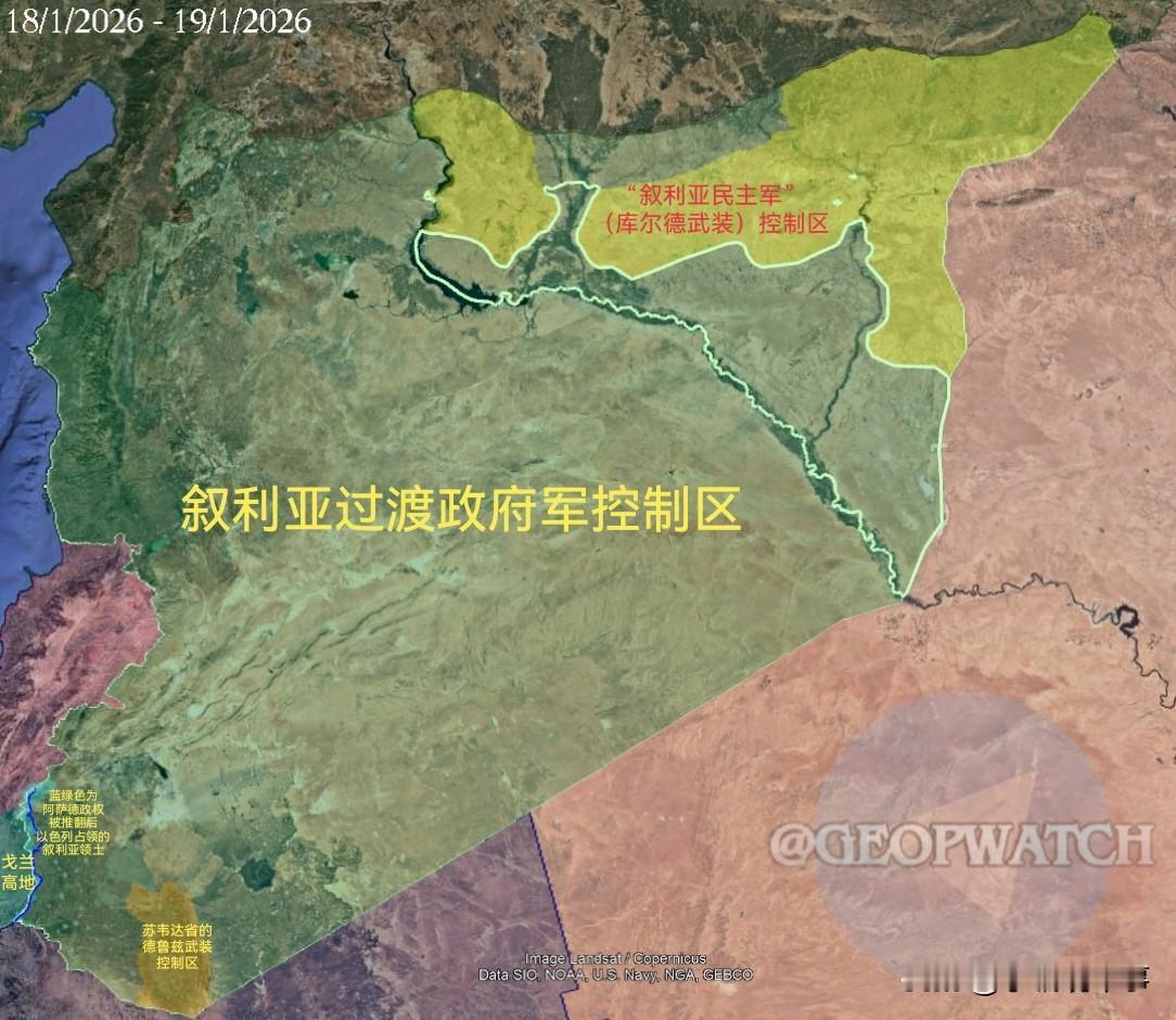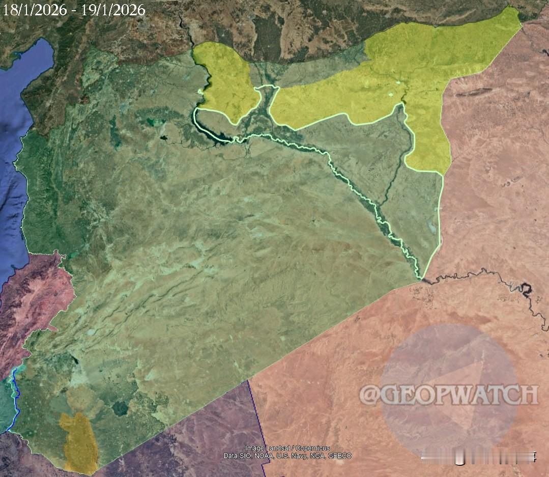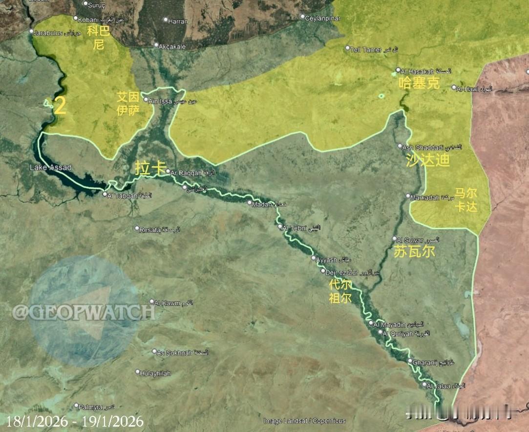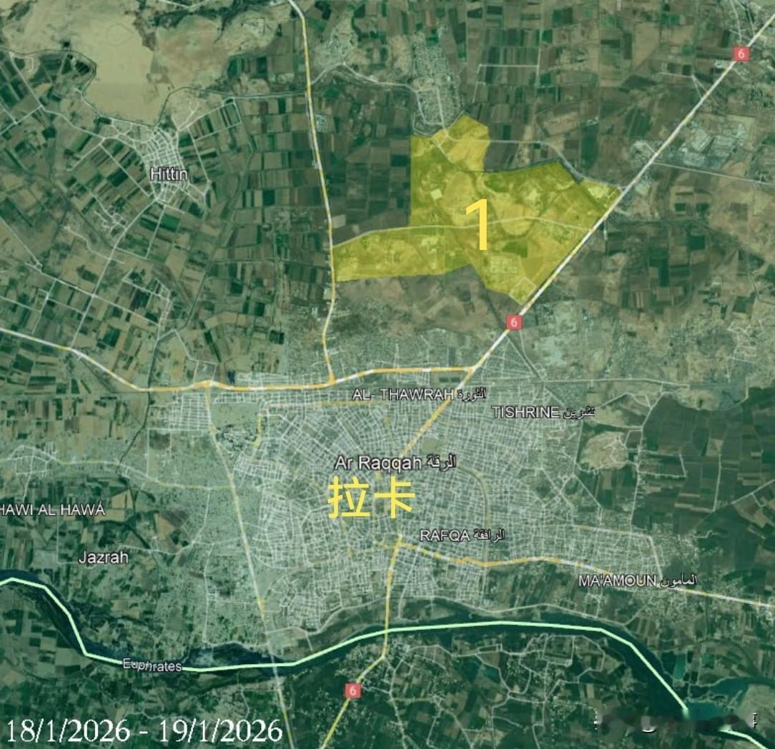 TG信源Geopolitics Watch发布了截至1月19日的叙利亚局势图(图一图二)。 该信源还更新了1月18日的战况: ➡️“叙利亚民主军”的崩溃仍在继续,他们几乎放弃了代尔祖尔省的大部分地区。叙利亚过渡政府军部队已从两个方向渡过幼发拉底河,随后分散开来,沿着道路推进,与“叙利亚民主军”部队交战(图四)。与此同时,叙利亚过渡政府军完全控制了奥马尔油田区域(图四标注的红圈区域示)。 ➡️幼发拉底河沿岸地区的多个城市和城镇爆发了大规模叛乱,参与叛乱的部落武装向河流两岸推进,与其他部落武装会合,最终从东西两面向拉卡市发起进攻——该市也爆发了叛乱(图四)。经过短暂的战斗和零星冲突后,“叙利亚民主军”被赶出拉卡市,现仍被围困在该市北部的第17师总部(图五1)。 ➡️在拉卡省北部乡村地区也爆发了叛乱,最终向南蔓延,与幼发拉底河沿岸的部落武装会合。最后,他们沿着西部的道路推进,目标是与蒂什林大坝的部队会合——由于“叙利亚民主军”的抵抗,进展甚微(图三图四2)。1月18日晚些时候,叙利亚北部边境的叙利亚过渡政府军向南发起进攻,在艾因伊萨与“叙利亚民主军”交战,同时与拉卡市的部落武装会合,将“叙利亚民主军”控制区一分为二。之后,叙利亚过渡政府军抵达拉卡市进行清剿行动,据报道“叙利亚民主军”的狙击手仍在该市活动(图四)。 ➡️在代尔祖尔和哈塞克两省区域同样爆发了叛乱。“叙利亚民主军”在苏瓦尔和沙达迪发动的反击失败。叛乱的部落武装占领了两地并向北和向东推进,但在叙利亚过渡政府军抵达前基本保持守势(图四)。 ➡️哈塞克市也发生了叛乱。然而,“叙利亚民主军”迅速反应,开始围攻叛乱的地区,导致其对阿拉伯民众实施了屠杀。这促使叙利亚各地的部落武装动员起来向哈塞克市进发,而叙利亚过渡政府已启动调查以核实这些报道的准确性(图四)。