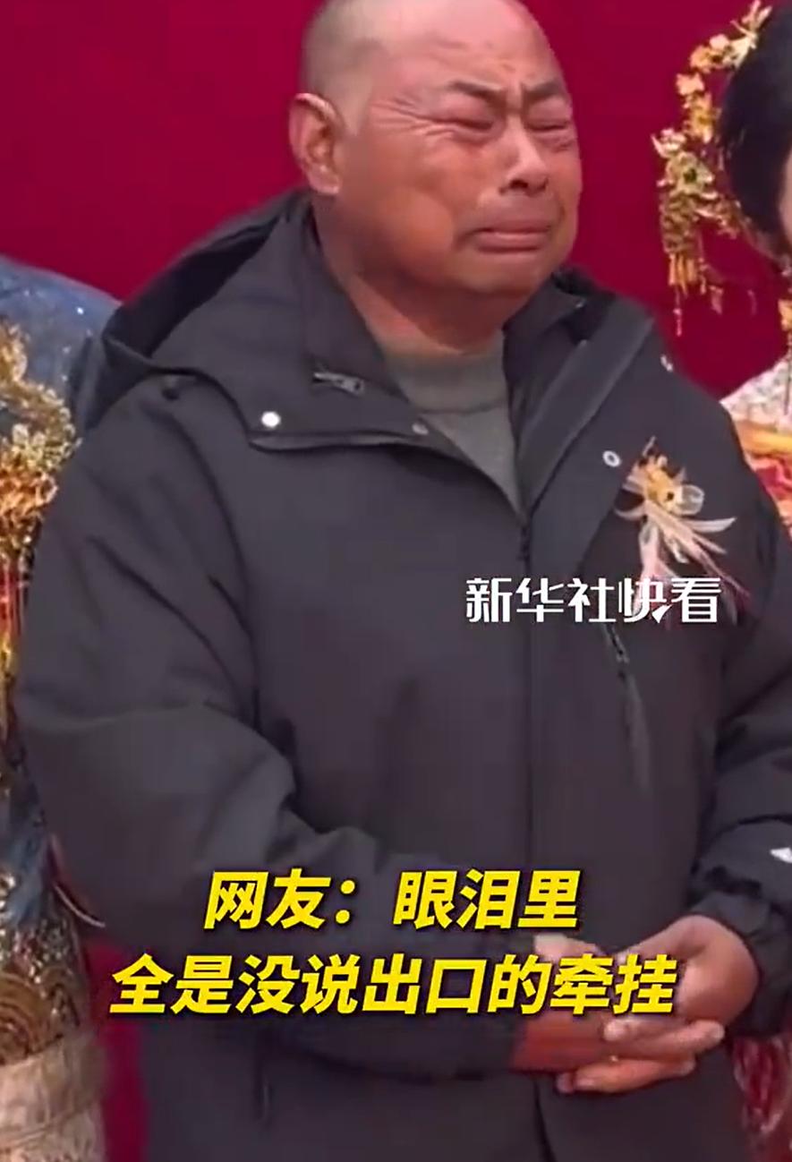 看哭了!河北,一对新人结婚,可在婚礼合影环节时,新郎和新娘微笑着面对镜头,而中间的父亲,却突然失控,眼泪不停地流,原来,女儿是这位父亲独自抚养女儿长大,看到女儿出嫁,泪水就止不住了。网友:这一哭,是不舍,也是心安 父亲的眼泪,不是因为婚礼的喜悦,而是因为这些年他所有的辛苦和付出,都在这一刻得到了释然。20多年来,他独自一个人把女儿抚养大,从孩子的哭闹到成长的烦恼,再到如今的出嫁,他没有任何的依靠,唯有自己撑起这个家 看到女儿穿上婚纱,站在新郎身边,他终于知道,自己多年的坚持和辛劳并没有白费。那一刻,眼泪里有太多的无言,有不舍,也有心安 拍摄师说,父亲的眼泪虽然没有一言半语,但所有人都能明白那背后的含义。尽管父亲没有说什么,但他站在那里,眼中泛着泪光,已经是最有力的表达。作为父亲,看到自己的孩子长大成人,成家立业,那份欣慰和成就感,是无法用简单的言语来表达的 这个画面被记录下来后,很多网友都说看哭了。有人留言说,这一哭,是不舍,也是心安。不舍的是自己小心翼翼捧在手心里二十多年的宝贝,从此要进入另一个家庭;心安的是看到女儿找到了归宿,终于有人能接替自己继续爱她、照顾她 说实话,看到这一幕我也不禁感慨,生活中很多父母为孩子付出了多少,而我们可能并未真正感受到。父母不求回报,只希望自己的孩子能过得好。而他们的情感,不一定能通过言语表达,但那种无声的守护和爱却始终存在 这也让我觉得,作为孩子,在婚礼这样的时刻,也该回望父母,体会他们的付出,感谢他们的养育之恩。有时候,爱真的不需要言语,父母的眼泪,已足够传递他们所有的情感