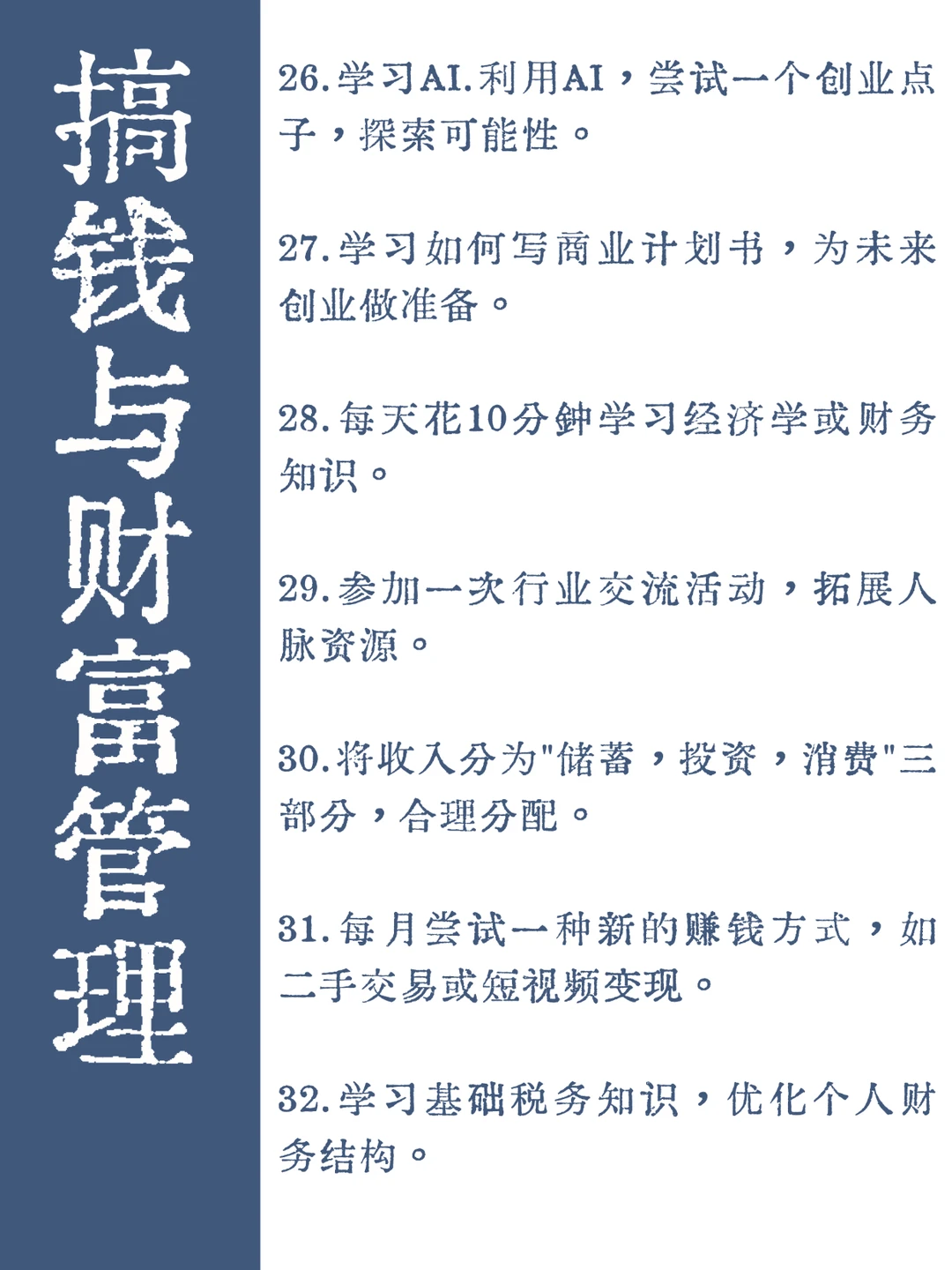 2⃣4⃣ 每天花10分钟反思得失,把经历变成经验。