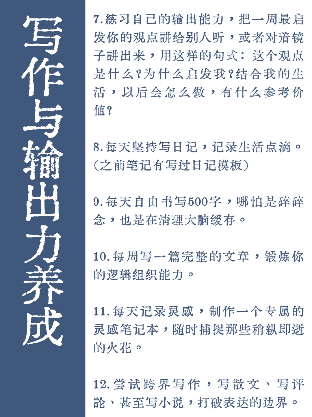 🔟 每周写一篇完整的文章,锻炼你的逻辑组织能力。