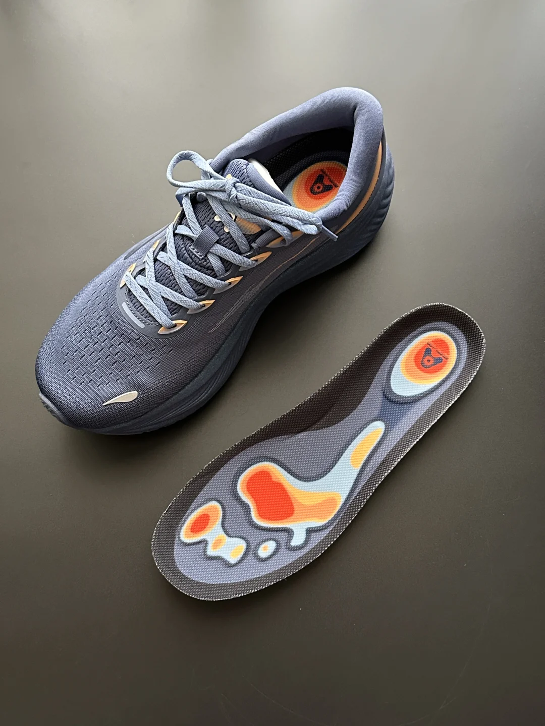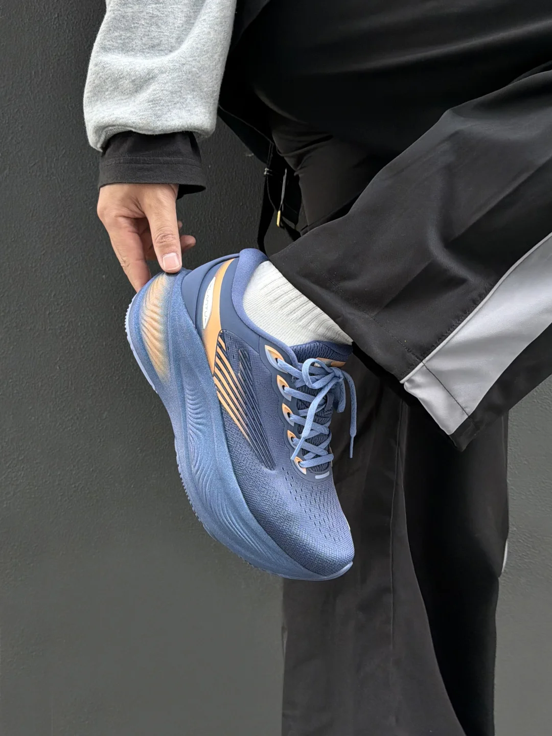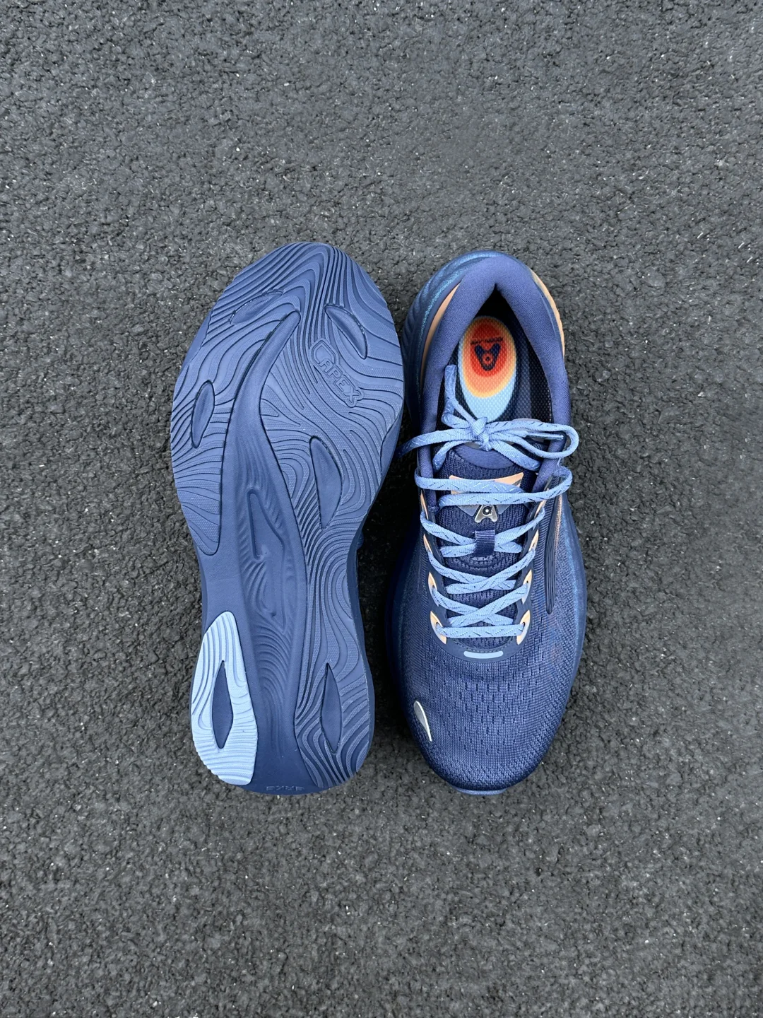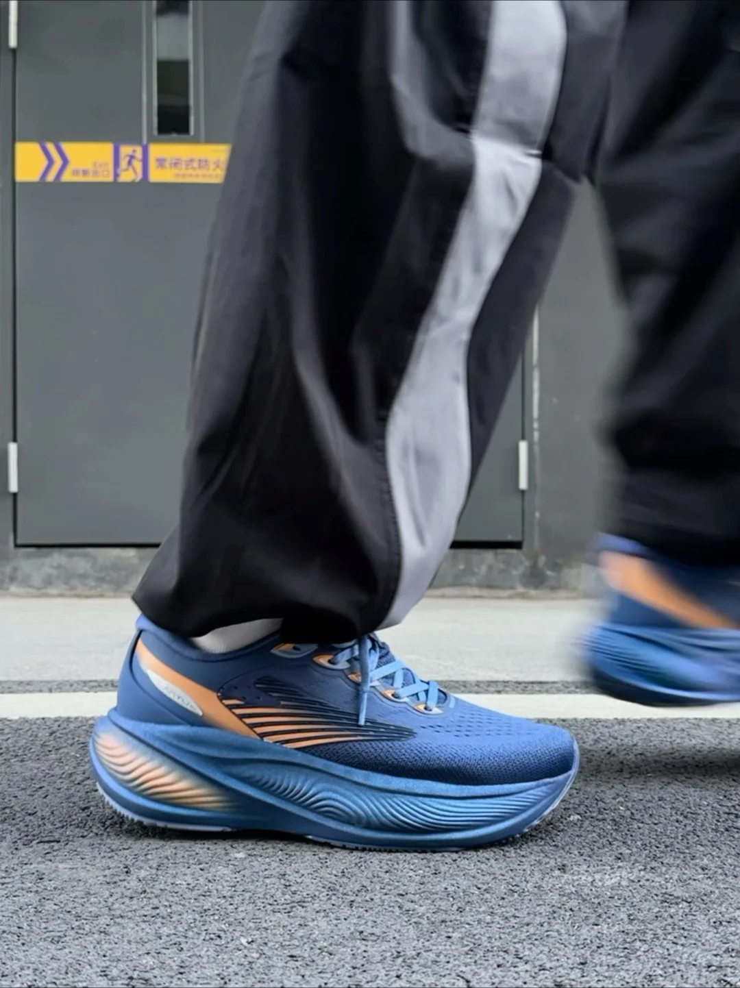 这双花青撞杏橙配色真的帅帅的,通勤运动穿真的是最靓的仔~ 👟宽版鞋底带来的稳,搭配船型弧度设计,跑步的时候重心自然向前,步幅流畅不费劲。鸿科技双密度中底肉眼可见的厚实,脚感直接拉满,缓震回弹一步到位~ 加上8cm仿生支撑鞋垫超贴心,落地点做了加厚冲击直接分散,挺适合久站久走,就是大体重也能轻松驾驭。