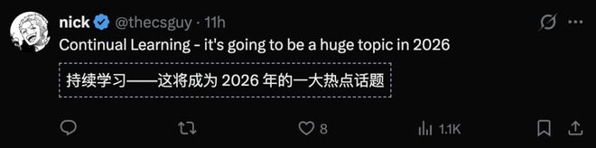 从OpenAI到谷歌,硅谷科技圈几乎达成了一个共识:2026年将是持续学习之年。