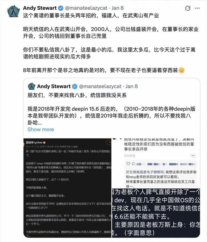 另一边,统信软件董事长林伟,有员工因在群里简单询问一句“项目还继续吗”,收到的是立即离职的通知。