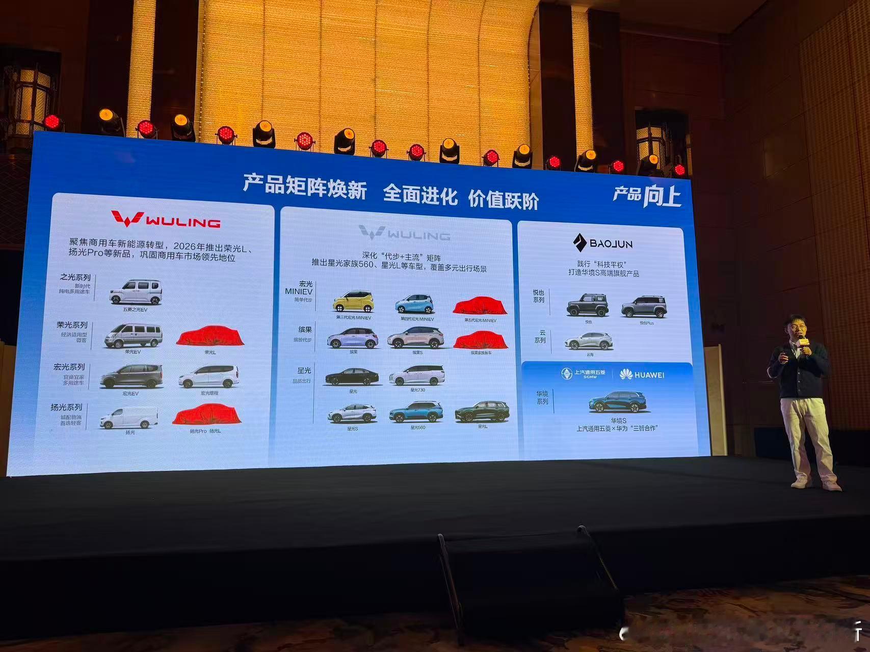 2025年五菱全年销量163.5万辆,新能源销量超过100万辆,占比超61%。2026年,旗下四大产品矩阵:- 红标,聚焦商用车新能源转型;- 银标,深化「代步 + 主流」产品矩阵;- 宝骏品牌,已经有「悦也」和「云」系列;- 全新的华境系列。最后这个,华境是与华为在智能制造、智能座舱和智能驾驶的「三智」合作。第一款车大六座华境S预计上半年上市,华境目标最后会独立运营。新能源汽车