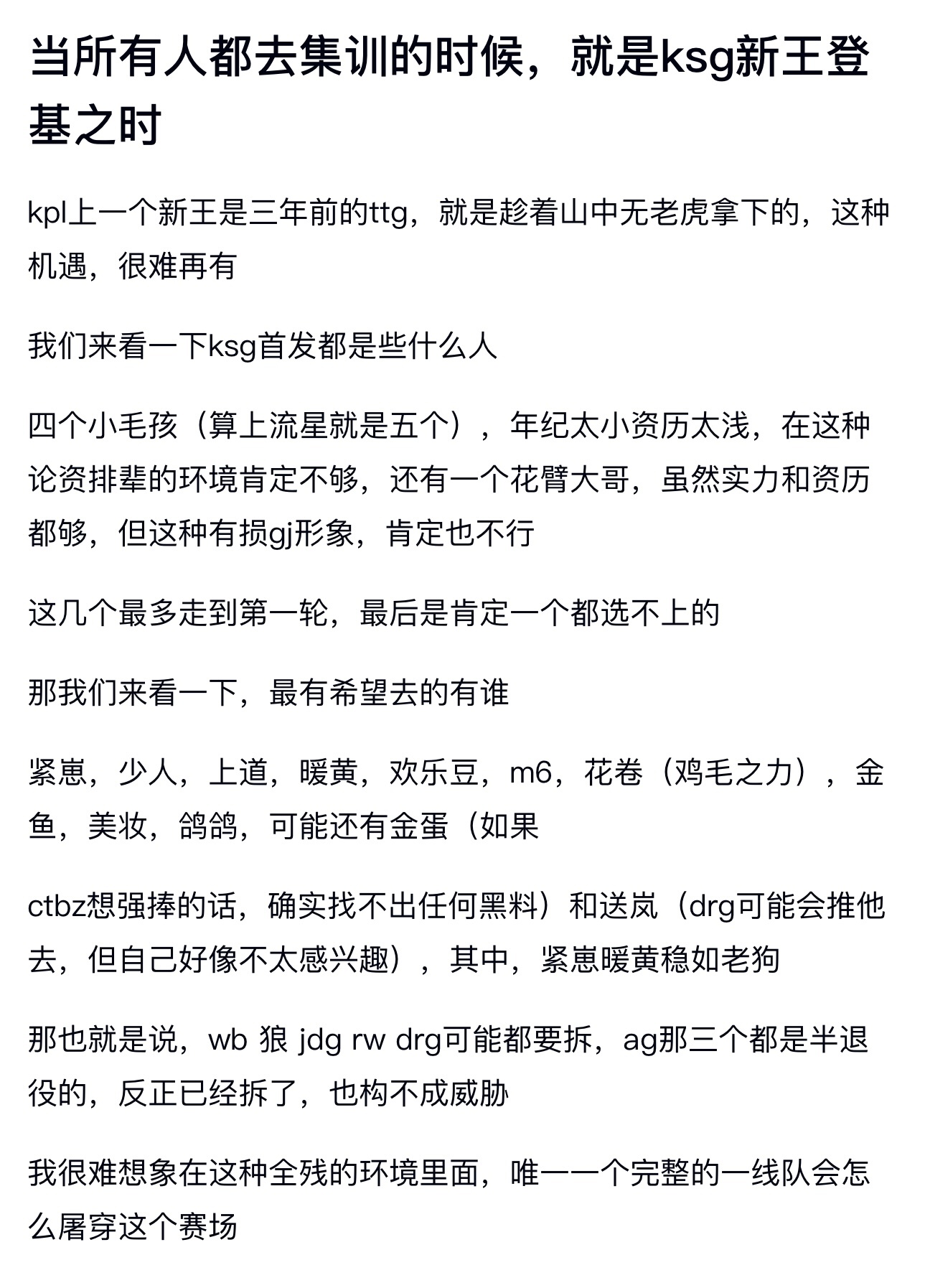 kpl当所有人都去集训的时候,就是ksg新王登基之时