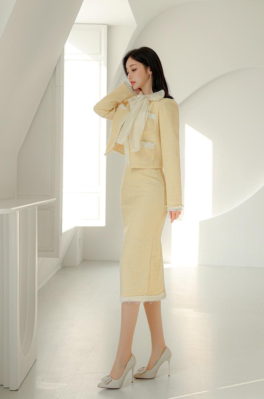 孙允珠这浅黄色连衣裙配同色系西装外套的穿搭,简直美出了新高度!浅黄色本就给人温柔的感觉,连衣裙贴身的剪裁勾勒出优美的曲线,行走间尽显女性的柔美。 再加上同色系的西装外套,又增添了几分干练气质。它不会像深色西装那样严肃,反而与裙子搭配得恰到好处,中和出一种独特的魅力。无论是职场还是日常出街,这样的穿搭都能让人眼前一亮,仿佛自带光环,不愧是有迷人优雅高贵气质的女神穿搭。 分享一张随手拍 街拍热门穿搭