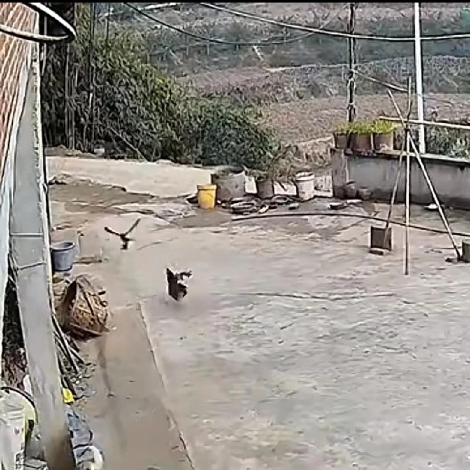 重庆一农户养了个狗狗看家护院,可是它却临阵脱逃。 1月18日,狗狗在院子里,看看没自己什么事,躺在地上懒懒的晒太阳。鸡妈妈觉得有主人在,还有狗狗看着,放心的领着一群小鸡在院子里刨食。 一只老鹰盘旋在空中,发现了地面上有小鸡,而且鸡妈妈和狗狗都没防备,不禁大喜,今天的午餐有着落了。 老鹰迅速向小鸡群俯冲下来,小鸡连忙躲藏。一只小鸡没藏好,被老鹰抓住。鸡妈妈勇敢的去救援,向老鹰发动攻击。老鹰慌乱中掉下小鸡,趁鸡妈妈再次发起攻击前,又把小鸡抓住,慌忙逃离。 鸡和鹰大战时,狗在做什么呢?狗狗听到了身后有动静,回头看了一下。见鸡和鹰正在激烈的搏斗,它不去帮忙,反而找个地方躲起来。小鸡从鹰爪掉落,恰好是它躺的地方。如果它不去躲,小鸡很有可能不会被抓走。 这真的是个不堪用的胆小狗。 老鹰俯冲抓小鸡 鸡妈妈立刻搏斗庭院狗狗 农村护家狗