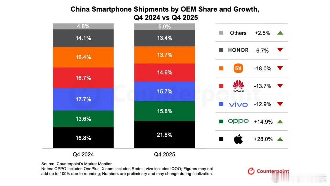 苹果重新夺回中国手机市场第一只能说iPhone17系列还是很抢手,那些说不买的又被打脸了吧。