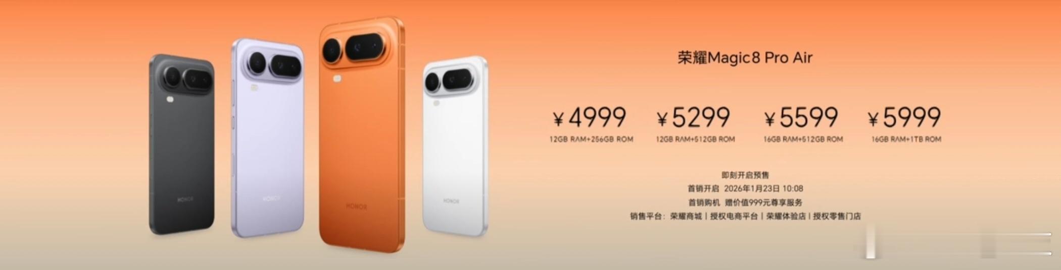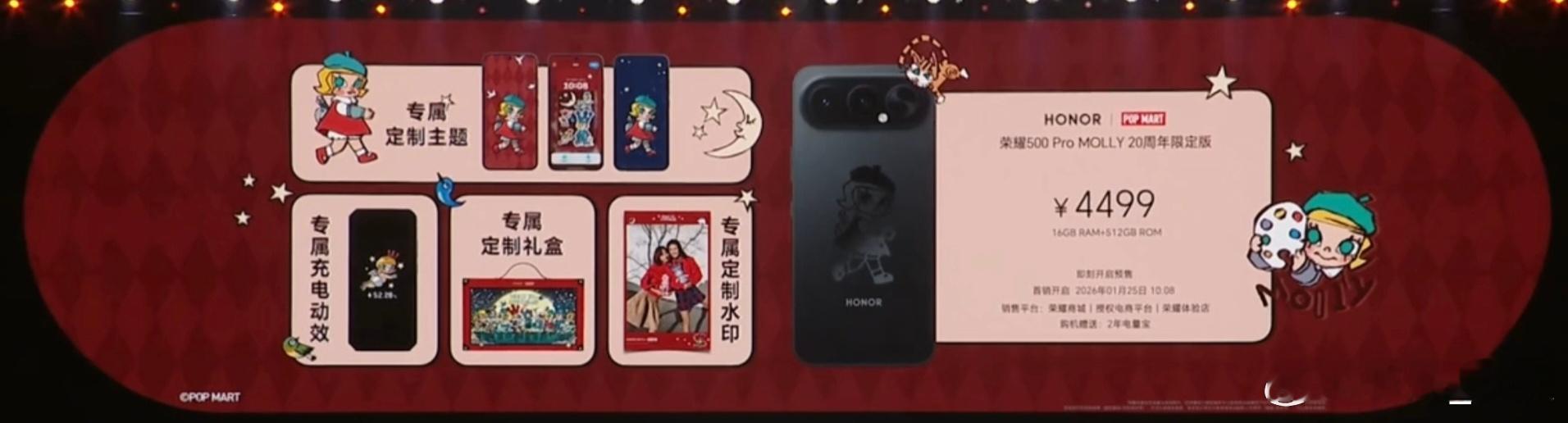 荣耀发布会 荣耀价格来了荣耀Magic8 Pro Air:12+256GB版4999元起荣耀500 Pro泡泡玛特Molly 20周年限定版:16+512GB 4499元荣耀Magic8 RSR保时捷设计:16+512GB版7999元起