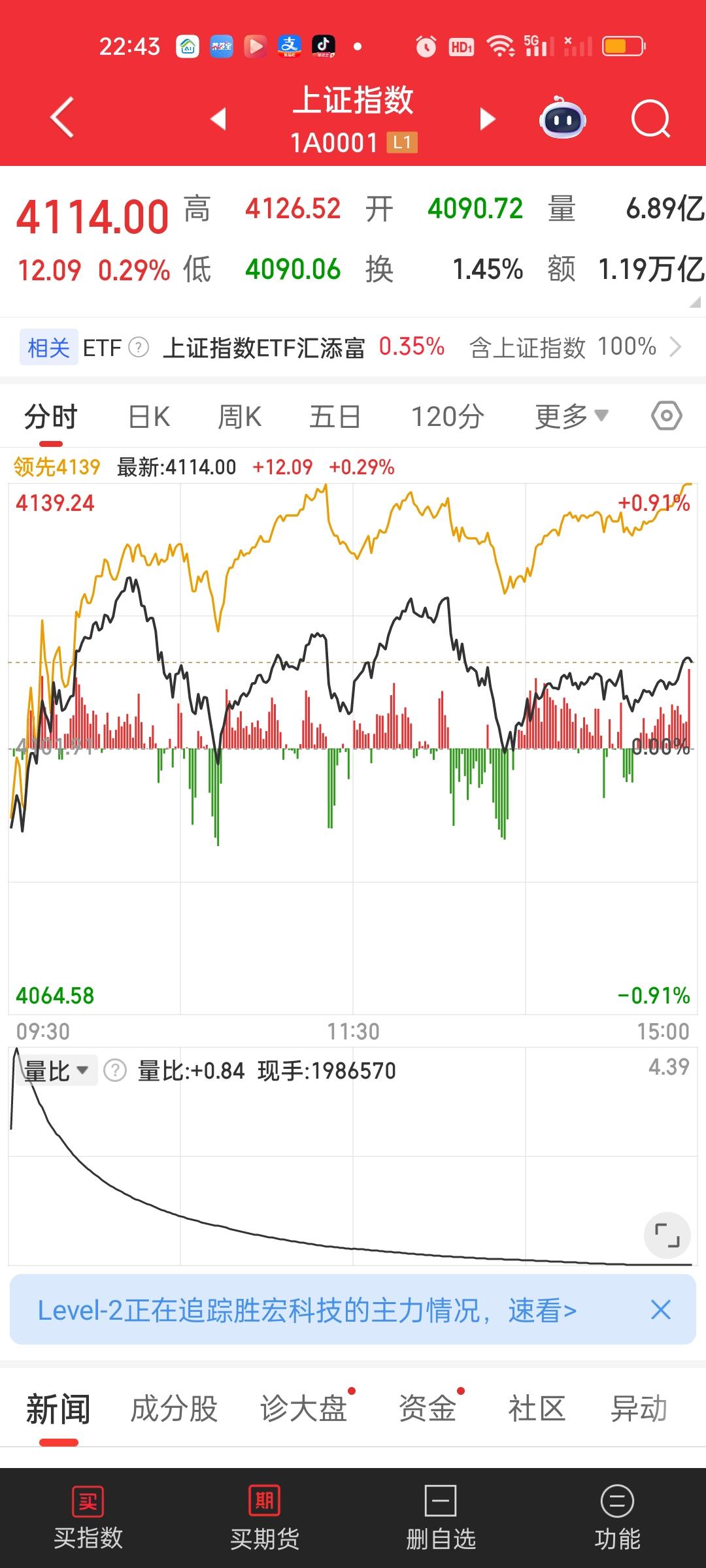 我们今天的上涨港股并没有跟。这就说明今天的上涨很有可能只是下跌中继。也就说仅仅是下跌过程中的一次反弹,下跌很有可能并没有结束。至于要跌到什么位置,还是我之前说过的4030的点位,平台上沿这个位置。也就是今天20日线的位置。今天收盘收在4114.00,4030/4114=0.9796,还有2.04%的下跌空间。指数还有2%的下跌空间,但个股的下杀空间还有多少就说不好了。
