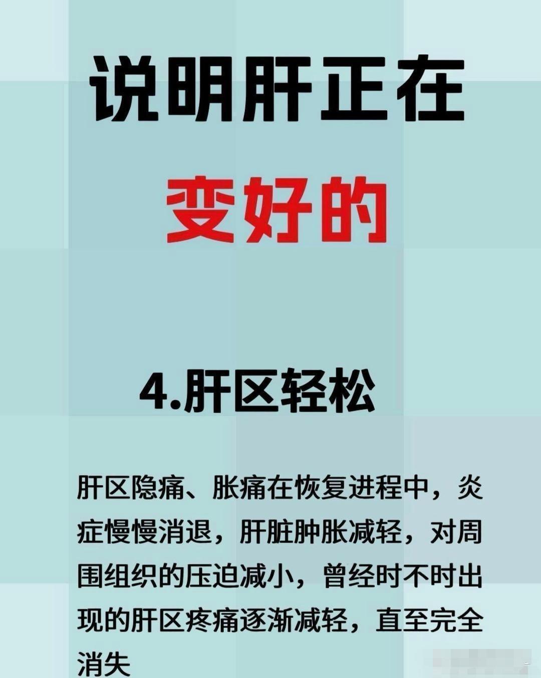 肝脏是人体的“化工厂”,重约1.5公斤,默默承担着五百多项维系生命的关键任务。它将营养转化为能量,合成凝血因子与蛋白质,像忠诚的卫士般分解毒素与药物。它储存肝糖原与维生素,分泌胆汁助消化,并拥有惊人的再生能力。这个位于右上腹的沉默器官,一旦受损将牵动全身健康。守护肝脏,就是守护我们代谢、解毒与储存的生命核心。因此保护好肝脏就是守护好我们的健康。 有五个信号说明肝脏正在变好,第一是食欲上升,第二是活力满满,第三是肤色提亮,第四是肝区轻松,第五是睡眠安稳。肝脏健康常识 肝脏健康自查 肝脏健康自查 肝脏健康警报 肝脏 肝脏保养方法