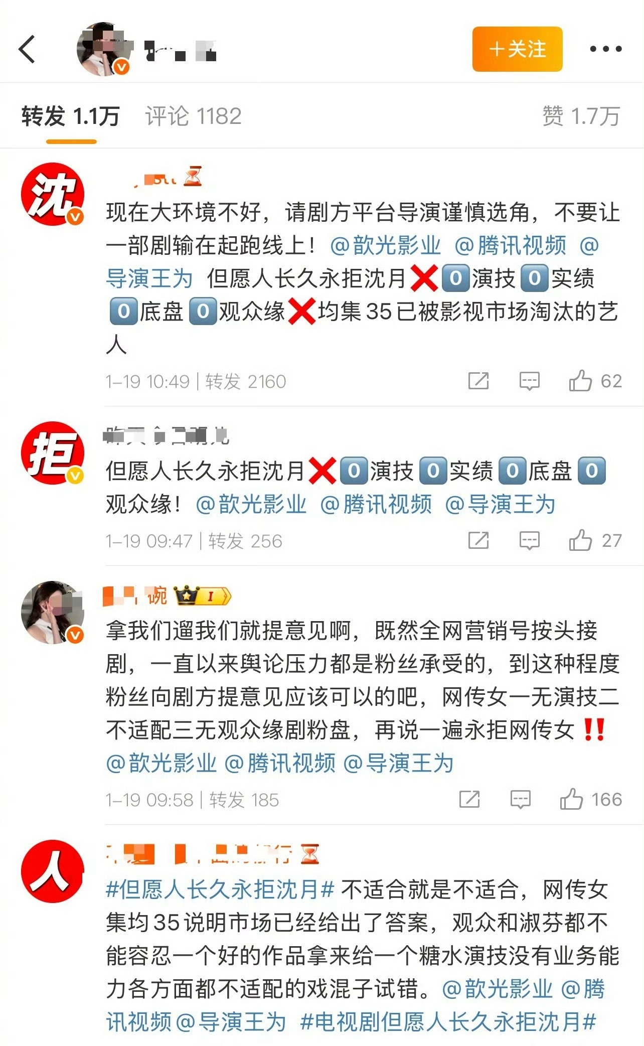 张晚意粉丝拒绝和沈月合作,都万转了,🥣丝还真是锲而不舍。
