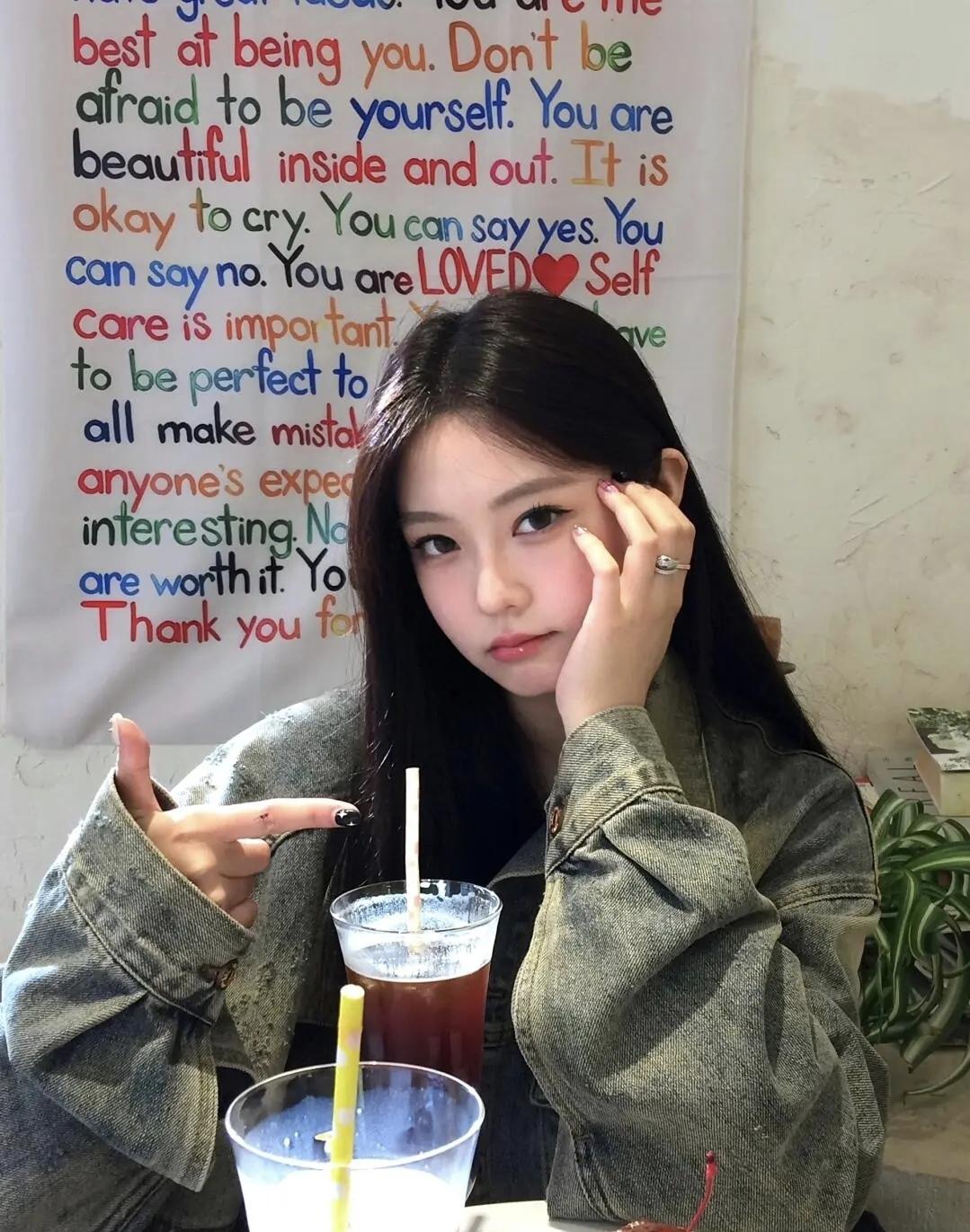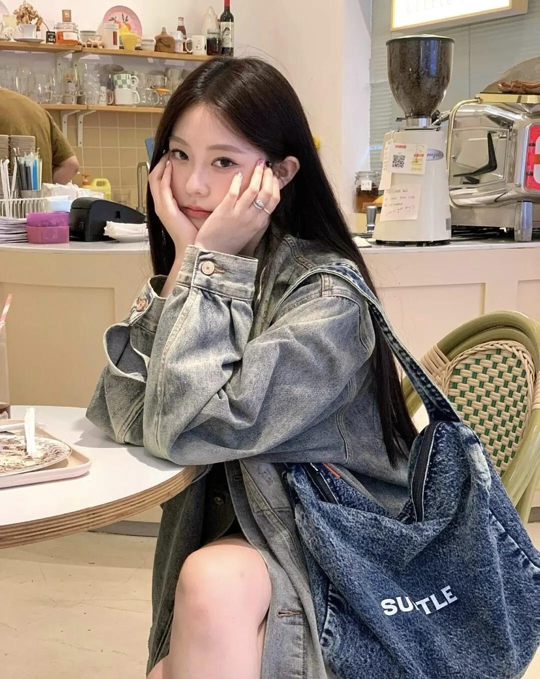 在满是治愈文字的小店角落,牛仔穿搭裹着慵懒的惬意,一杯粉色饮品甜化了午后时光,就这样和温柔的生活撞个满怀