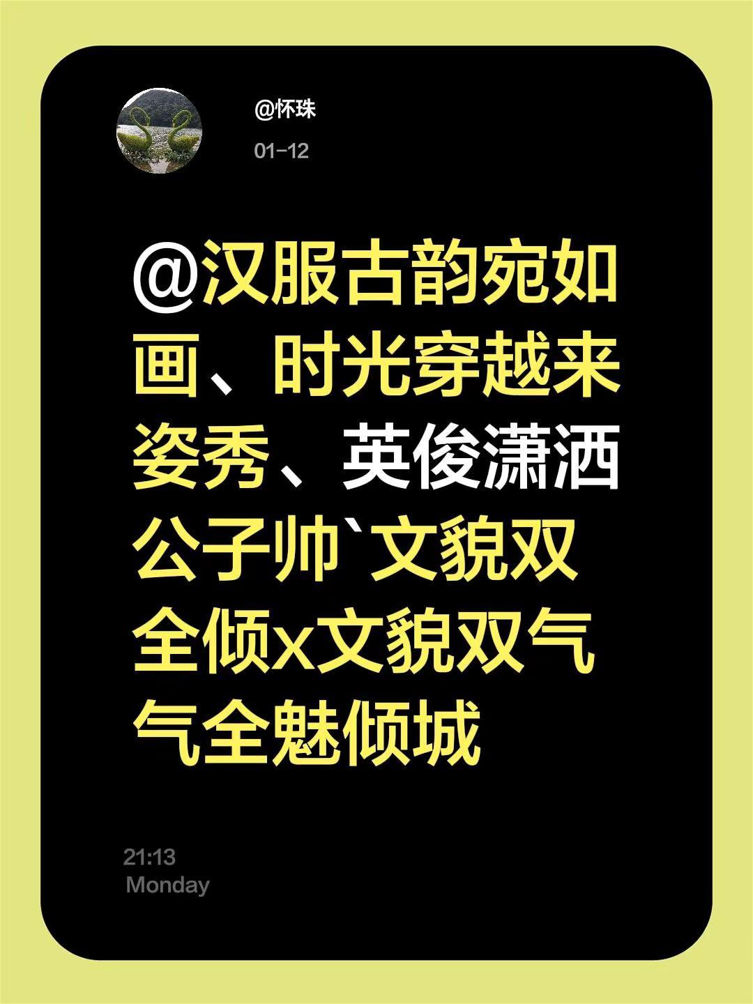 我评论了@幕容云海的作品:@汉服古韵宛如画、时光穿越来姿秀、英俊潇洒公子帅`文