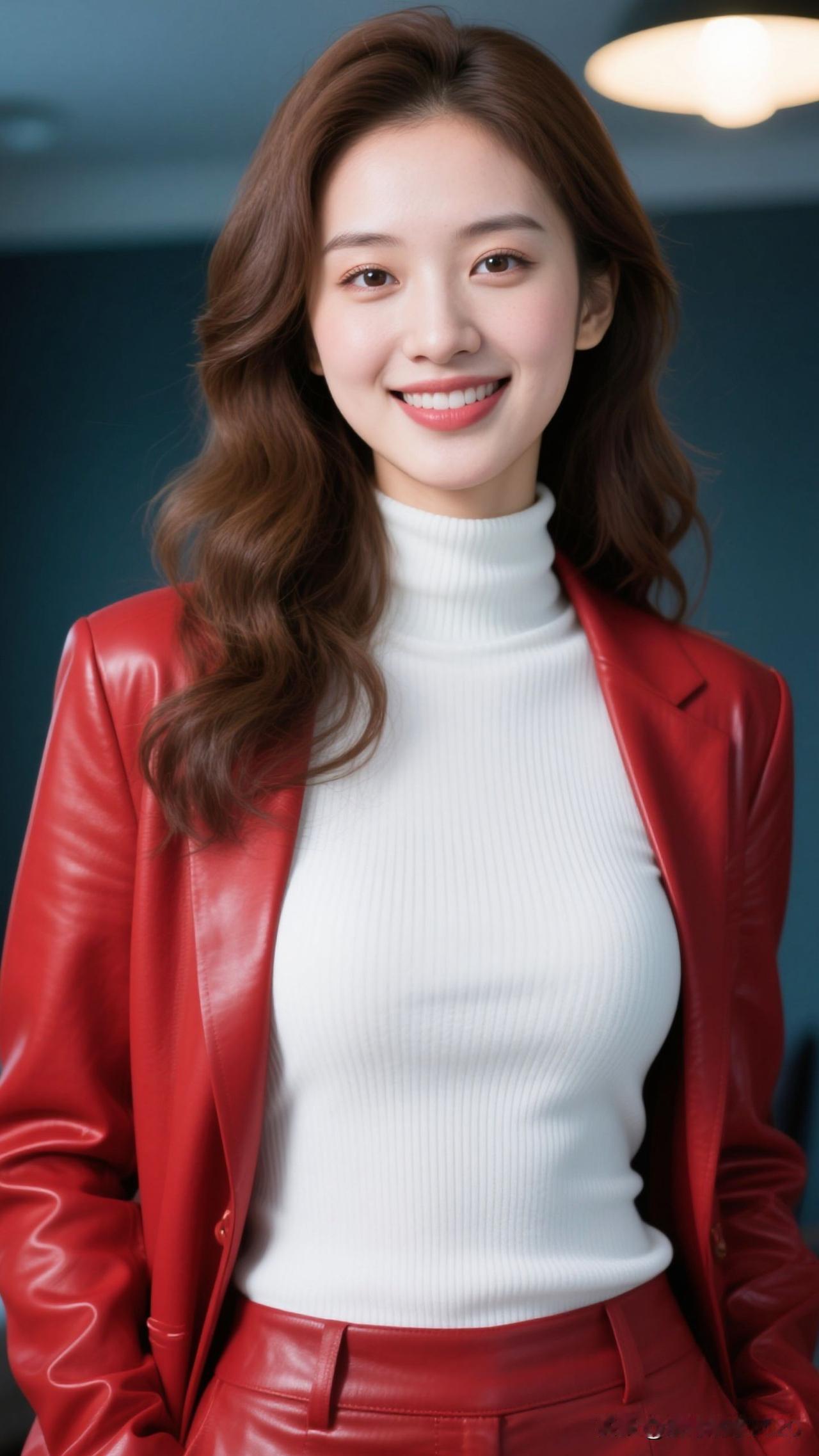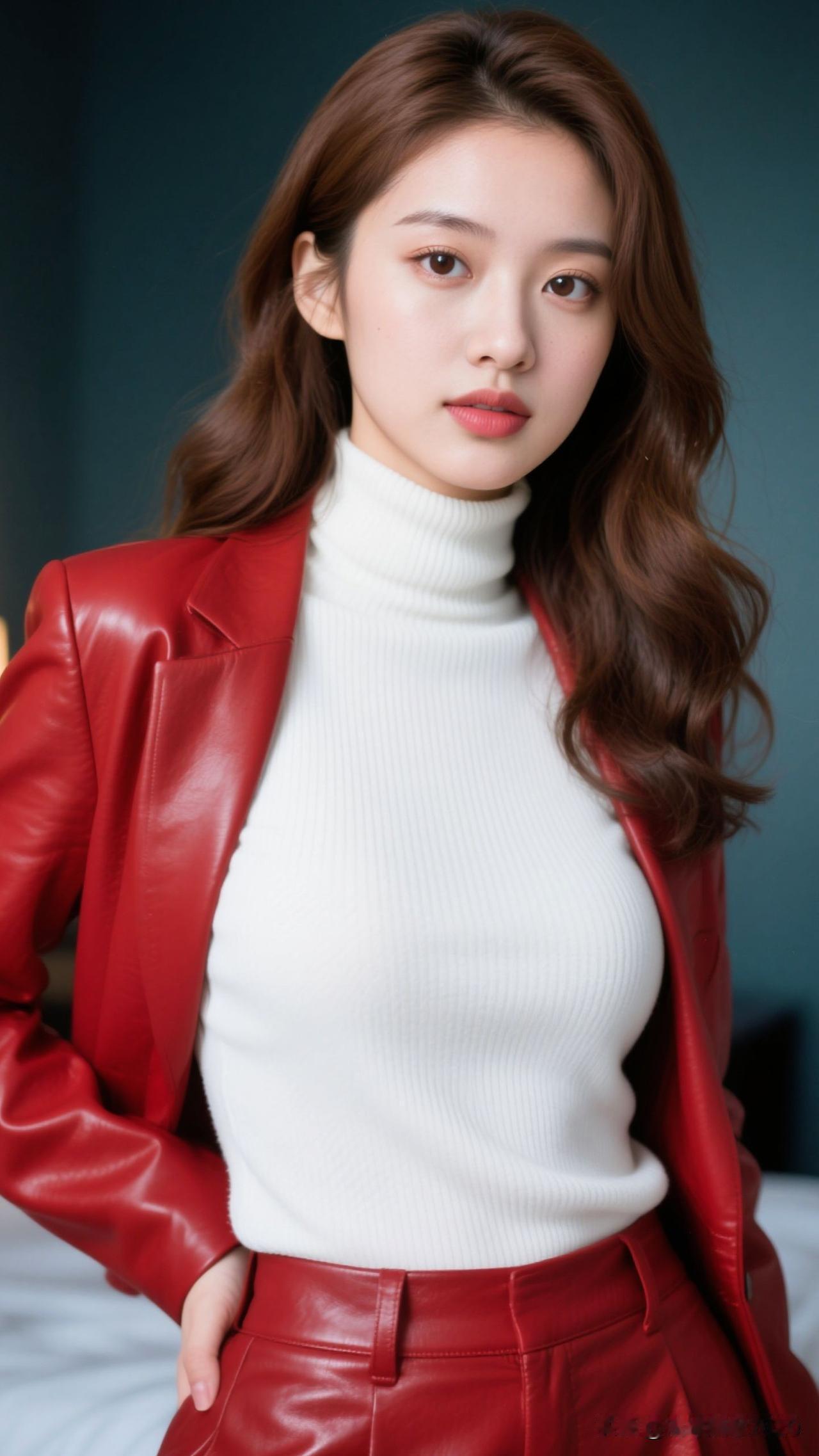 暖光为幕,红皮革是烧得正旺的诗,白高领盛着温柔的风,她站在那里,就是治愈与张扬的共生画。高领红装照 高领红衣照 高领温柔写真 高领红毛衣 高领印花裙 高领照