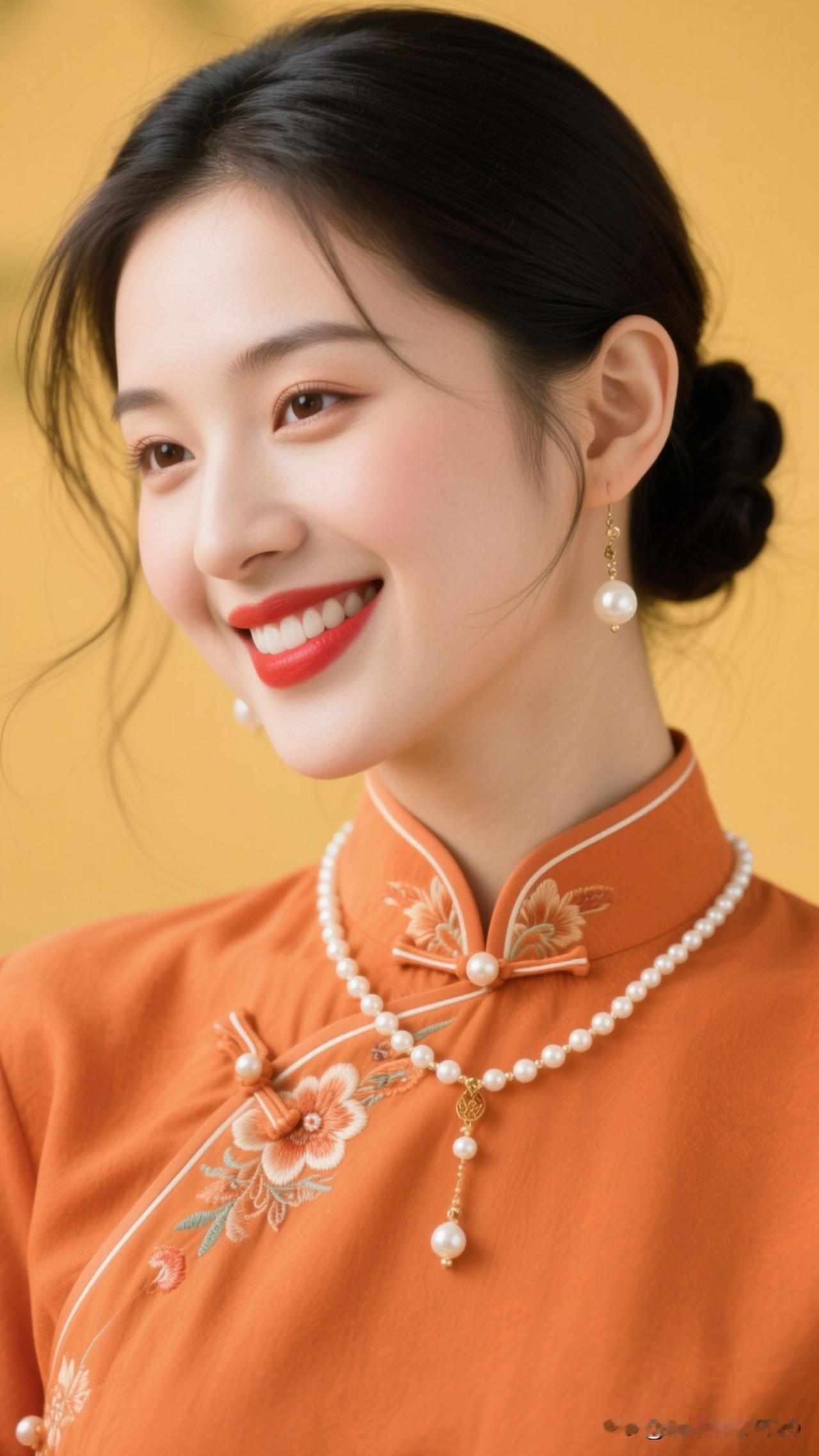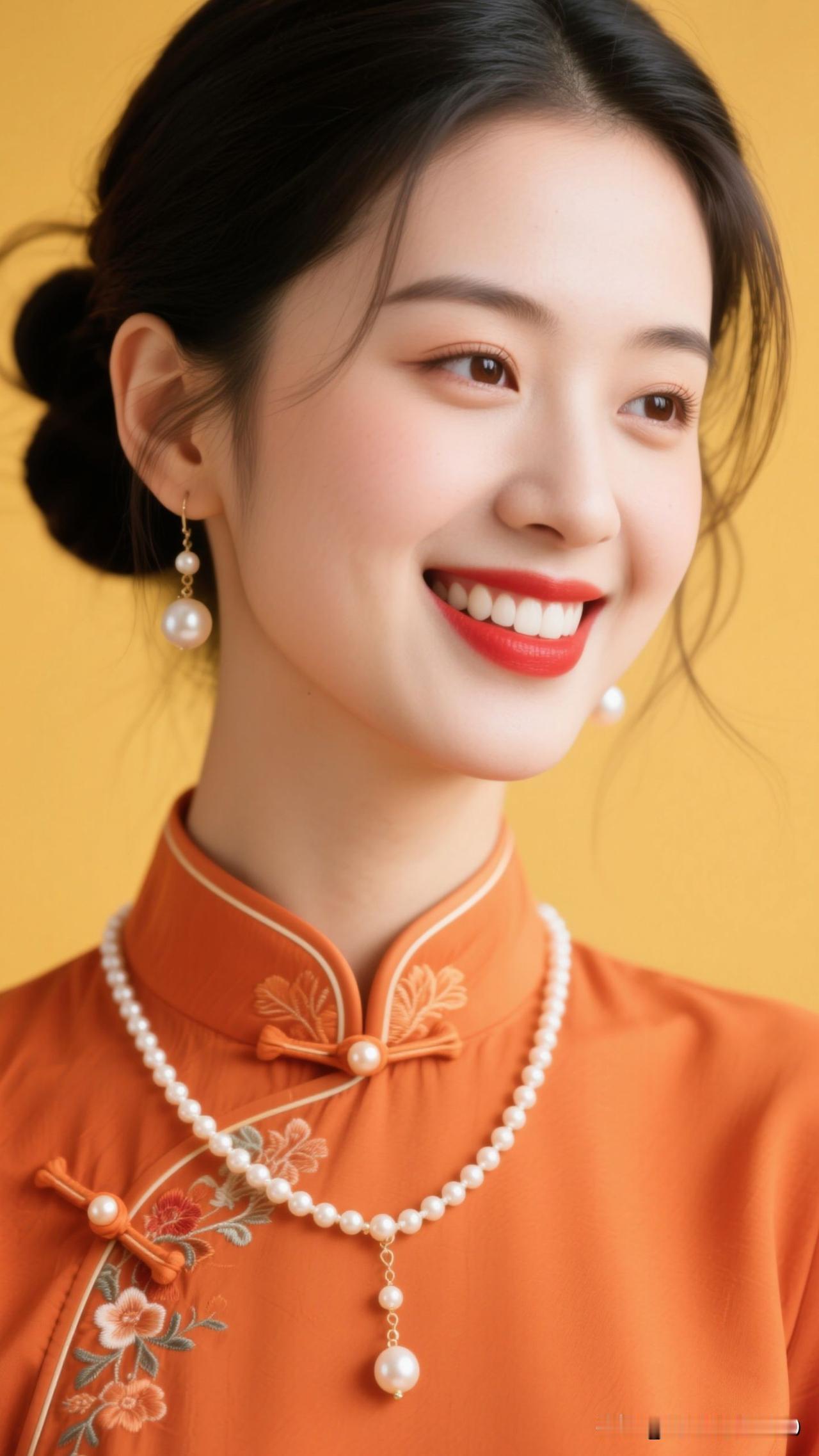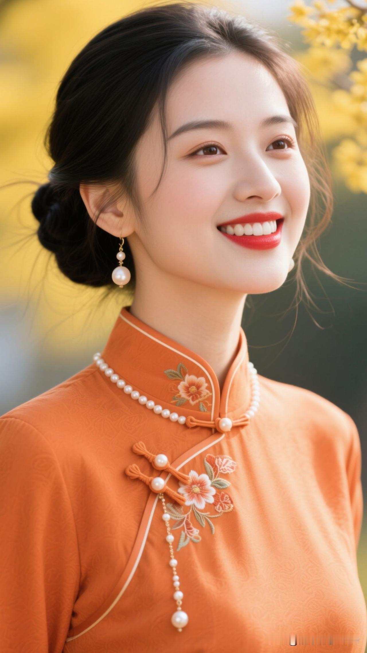 🍊 暖橘织进旗袍的肌理,珍珠摇着江南的柔,连呼吸都浸着清冽又妥帖的浪漫。