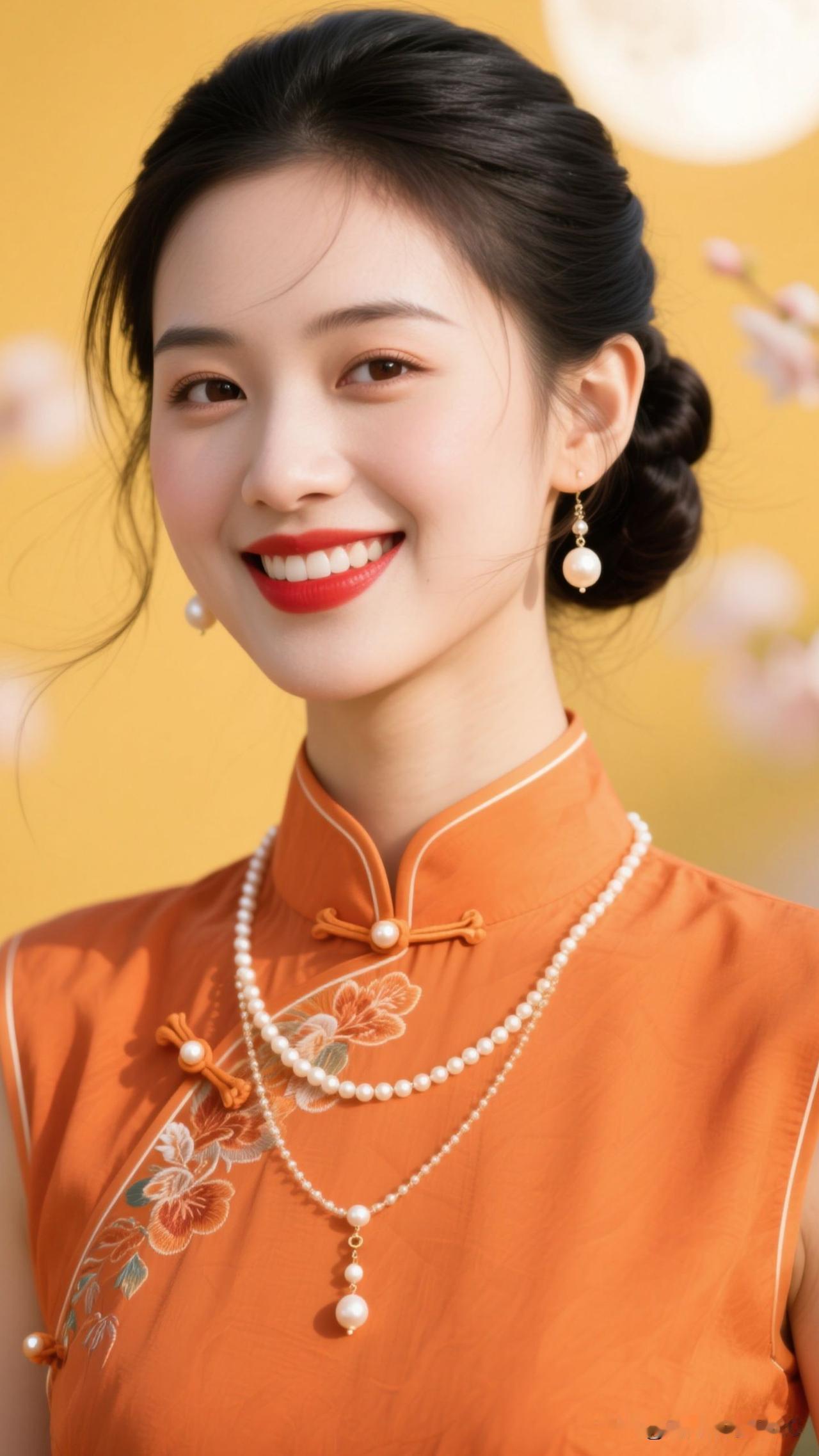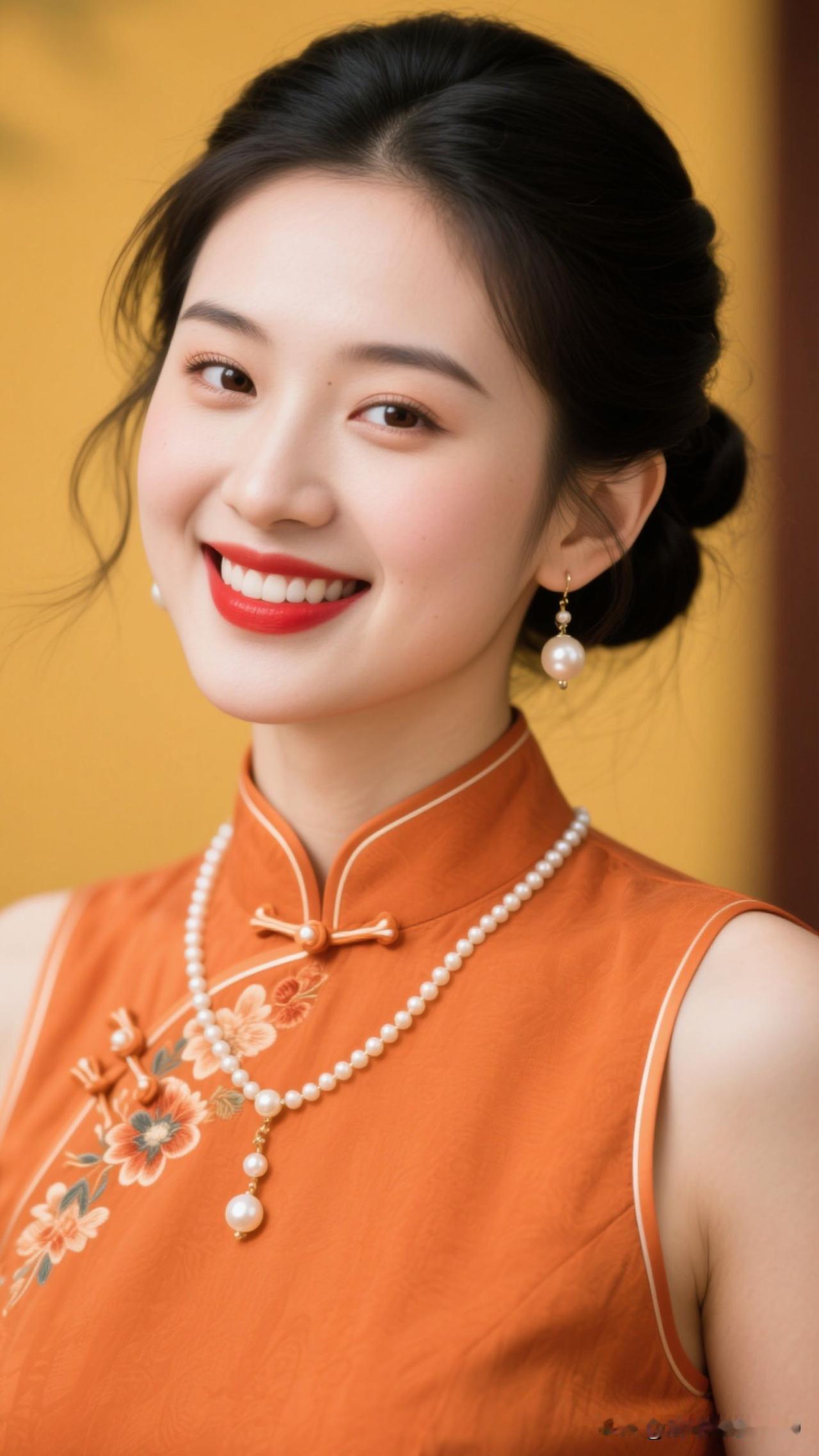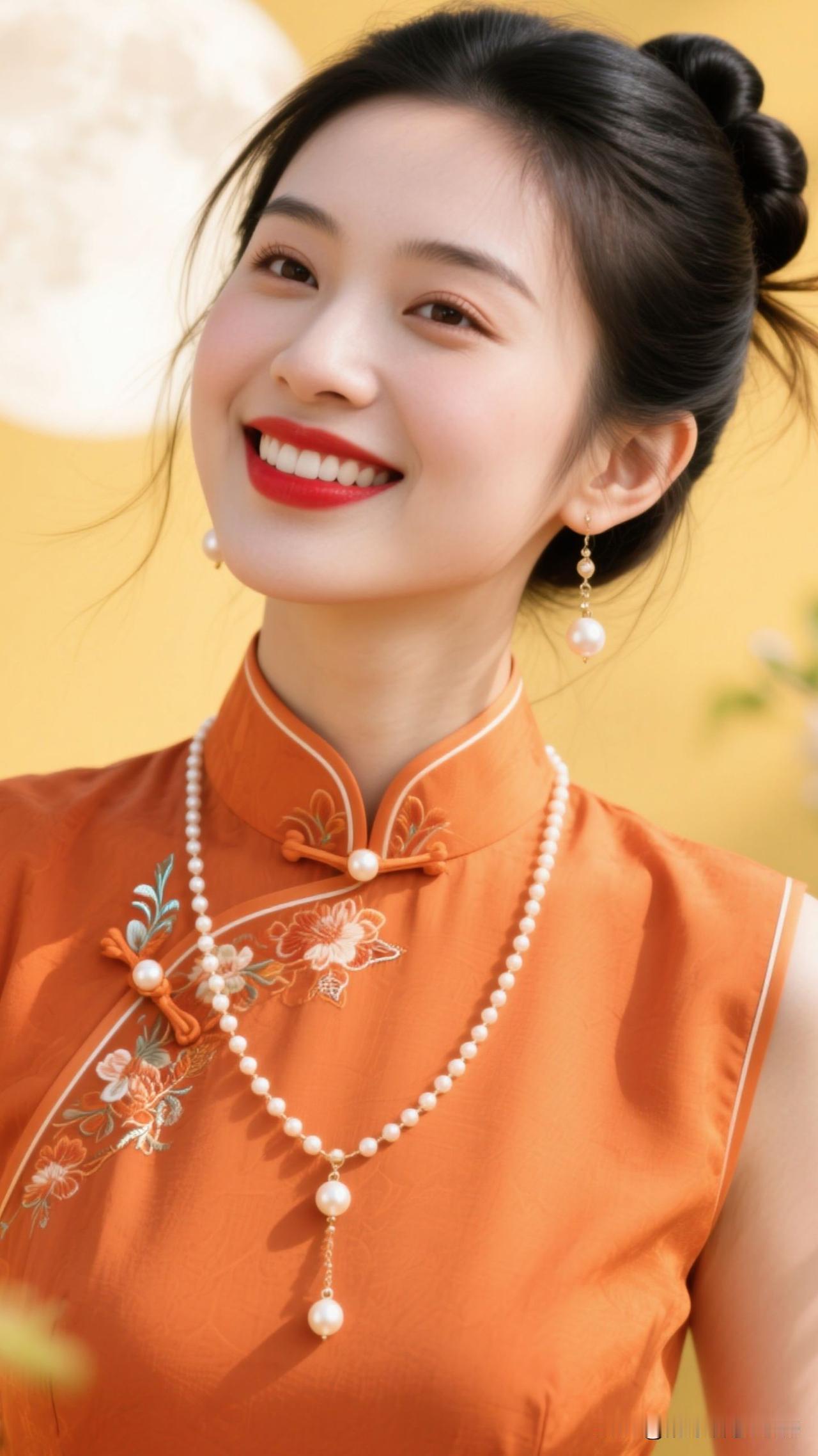 🍊 暖橘织进旗袍的肌理,珍珠摇着江南的柔,连呼吸都浸着清冽又妥帖的浪漫。