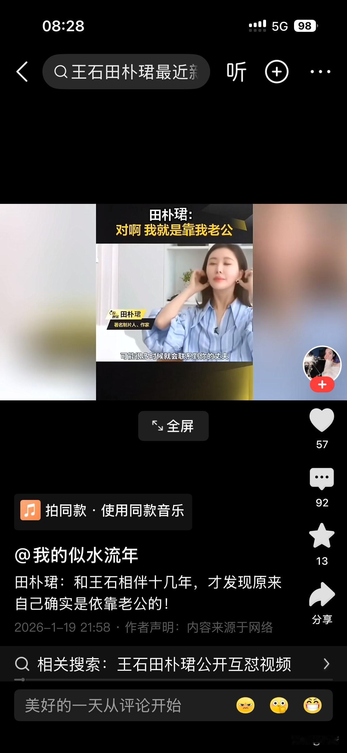 一辈子爱名胜过爱利的王石,晚年被田朴珺拉出来在互联网游街,真的是可笑可叹。发誓一辈子不靠男人的田朴珺,发现独立女性的大女主人设不讨喜后,又捡起了三从四德小鸟依人的标签。嗯,就是大嘴巴一进一出的,老王悲啊……