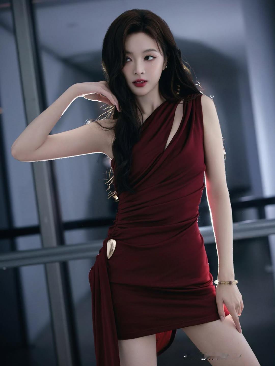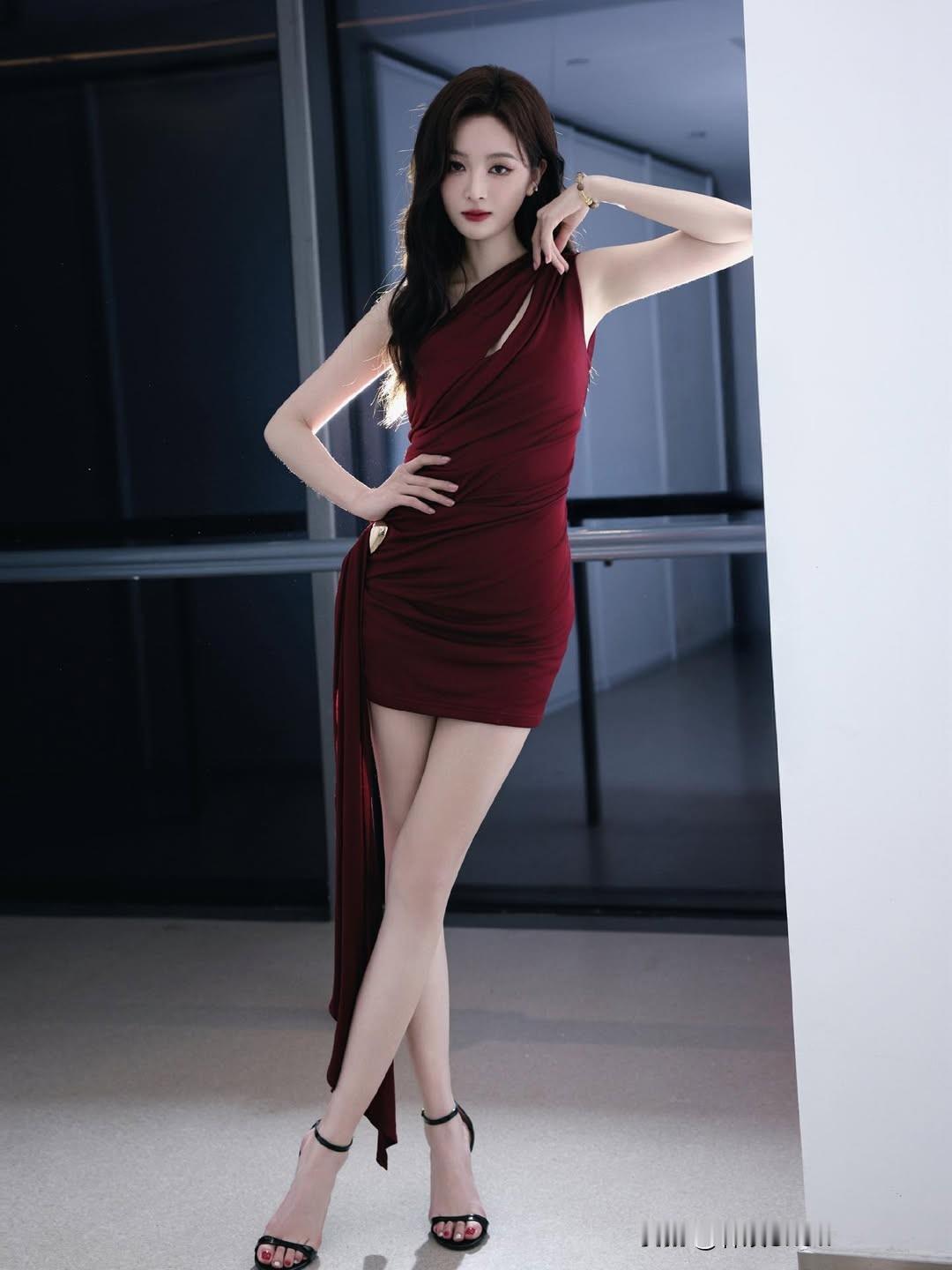 优雅红裙,都市女郎,时尚穿搭,魅力四射大长腿 性感火辣好身材