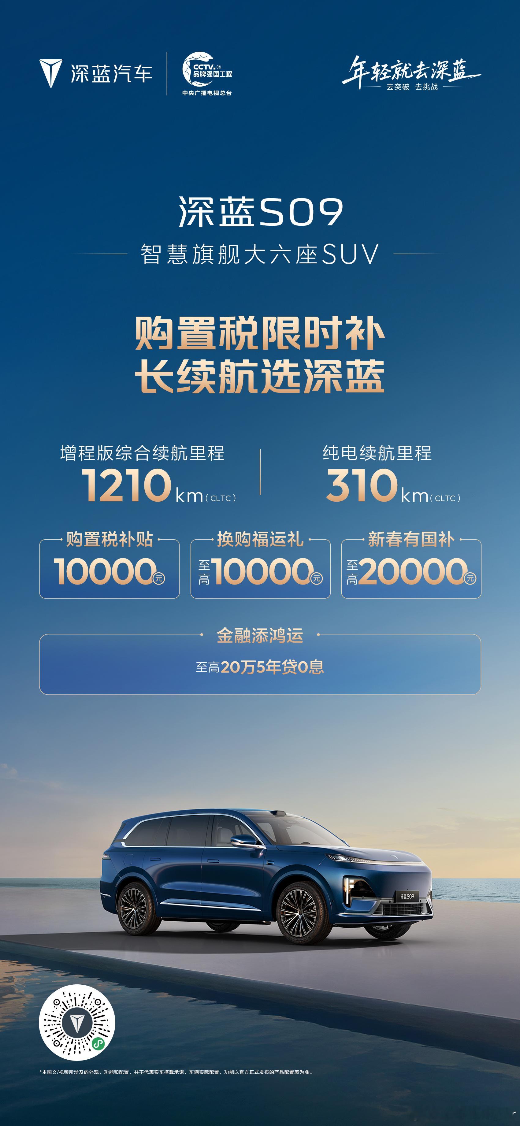 购置税限时补,长续航选深蓝!深蓝双重保障:政策礼遇+续航实力。四重好礼,助你轻松出发。长续航选深蓝 深蓝汽车深蓝汽车