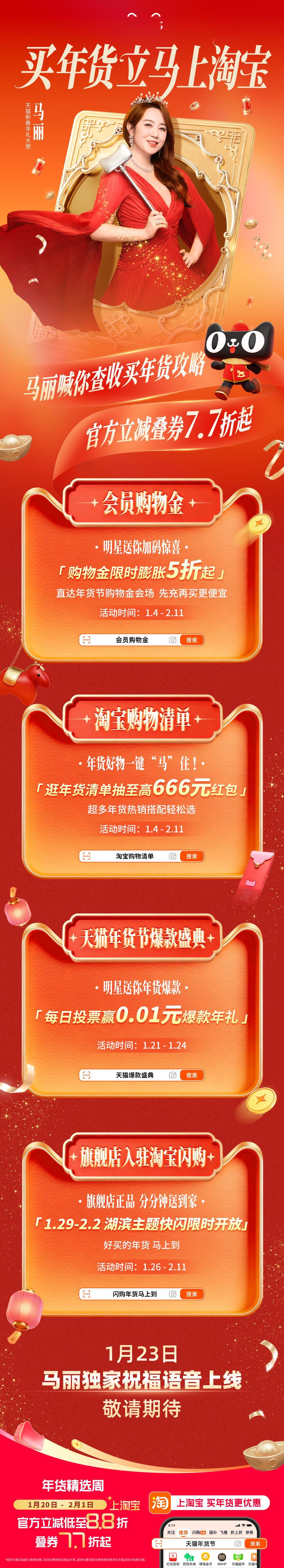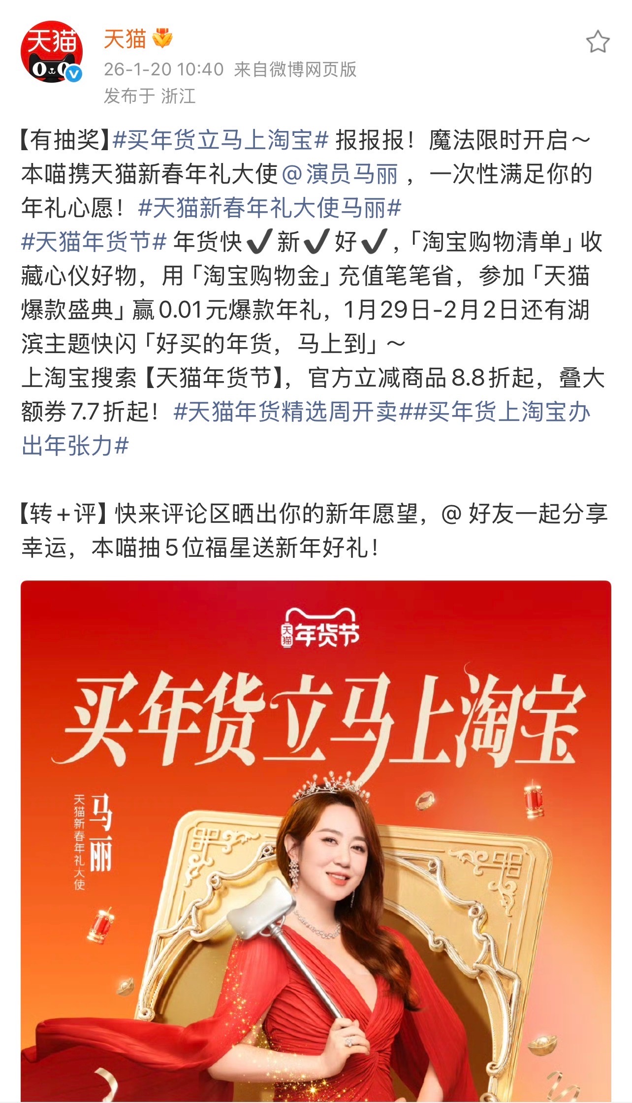 买年货立马上淘宝宝子们,官方立减8.8折,叠券还能7.7折起,这折扣力度直接杀疯了!赶紧回淘冲一波,这波羊毛不薅真的亏,手慢就没啦!天猫新春年礼大使马丽