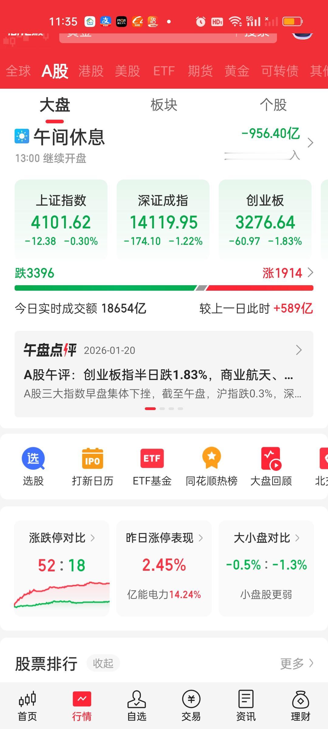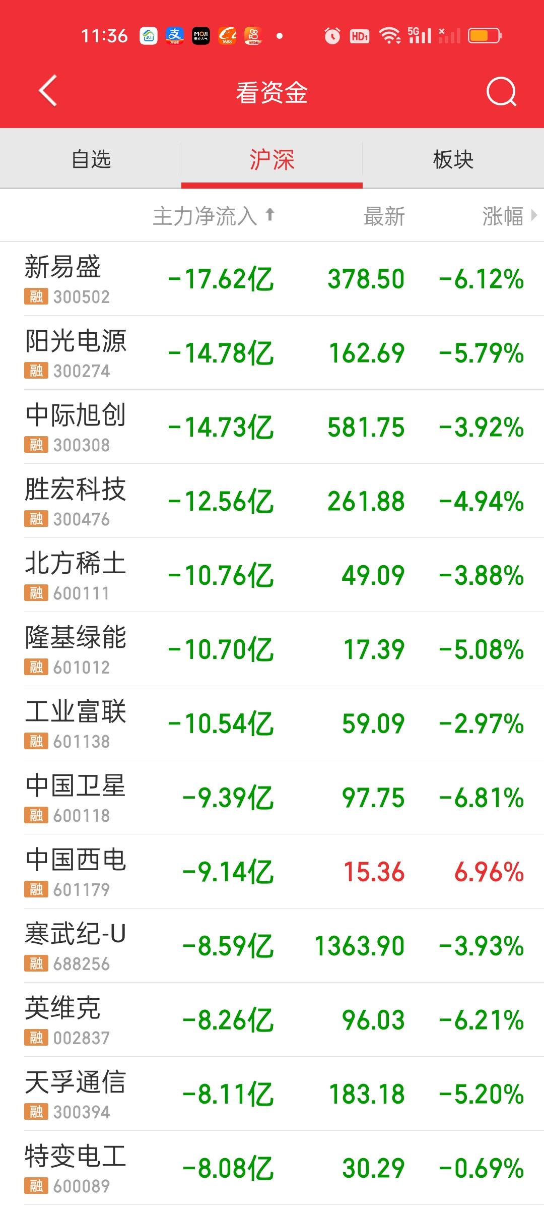 中午收盘了,下午还会不会继续下杀说不好,所以这个地方最好悠着点。这个地方是银行,保险和地产拉上去的,券券今天没有出力。今天和昨天涨跌家数掉了个个,昨天涨了3000多家,今天跌了3000多家。今天对科技可以说是全方位的围剿。很多板块跌幅都在3%以上。很多人今天损失会比较多。 CPO几个核心个股今天流出资金比较多,跌幅也比较大。几家商业航天龙头,光伏龙头,芯片龙头今天下杀的也比较厉害。