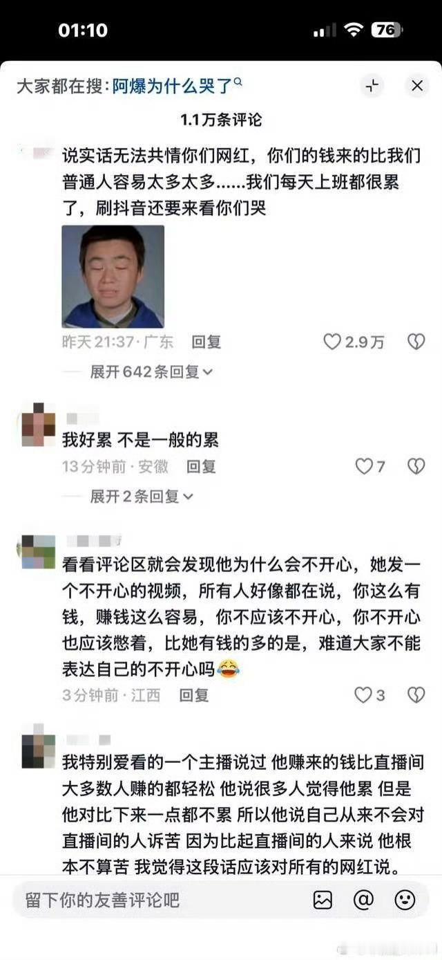 阿爆到底是谁在追随这群网红一天天直播呢?到底是谁在同情网红?没有人觉得很奇怪吗 不是剧本就是剧本 然后美滋滋十分钟几个w进口袋 然后发发小视频哭诉一下自己孤单或者感情,然后又美美提现,就一群傻子同情