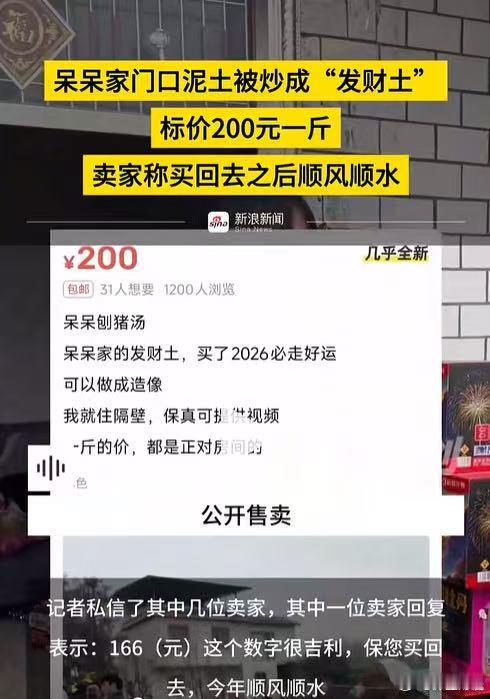 呆呆家门口泥土被炒成“发财土”标价200元一斤,卖家称买回去之后顺风顺水 当地回应呆呆家门口泥土被卖