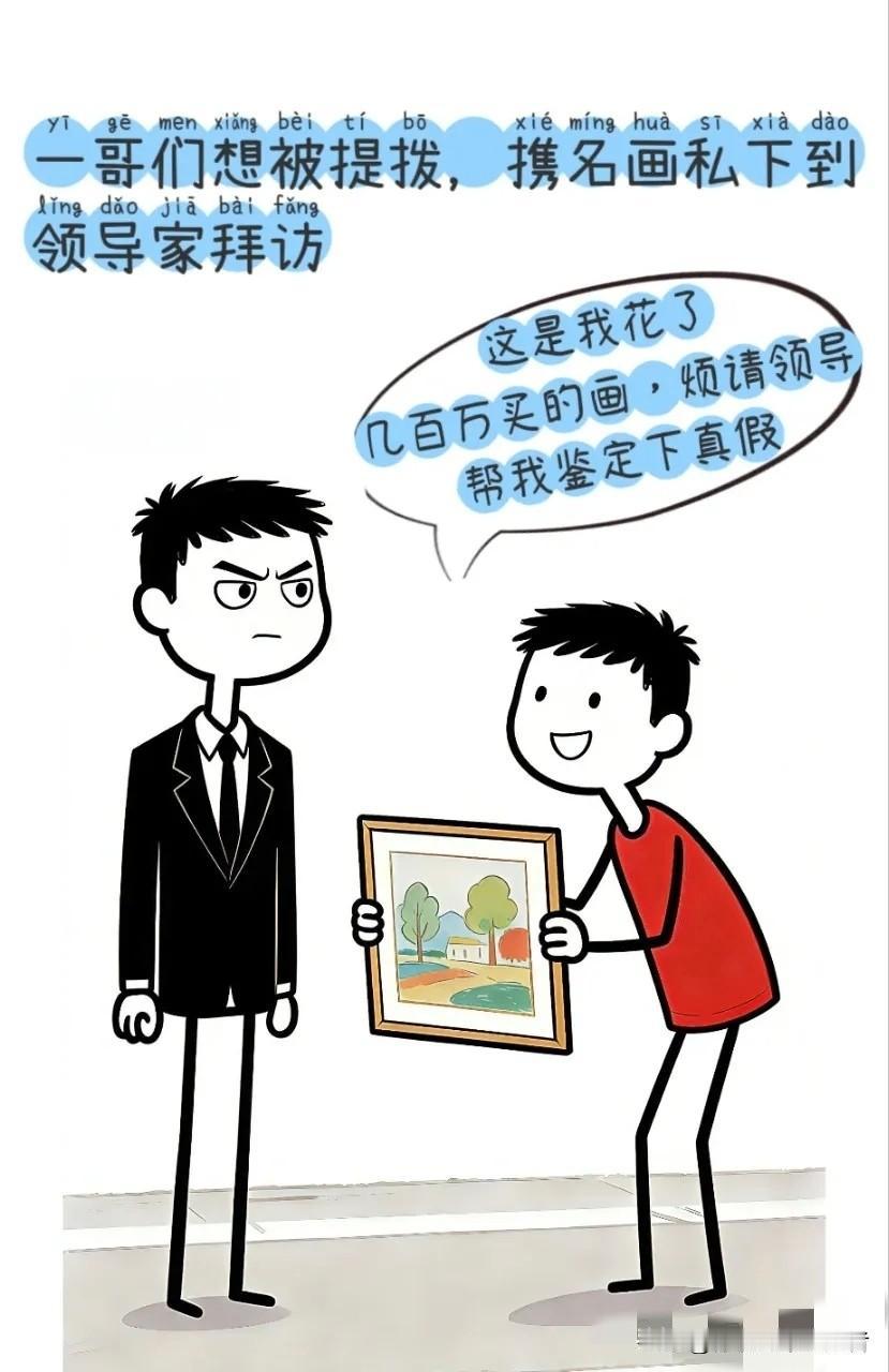 逗你笑:哥们想被提拨,私下到领导家拜访:这是我花几百万买的画,烦请领导鉴定下真假。领导不容置疑说:假的,这种画市场300块一幅…