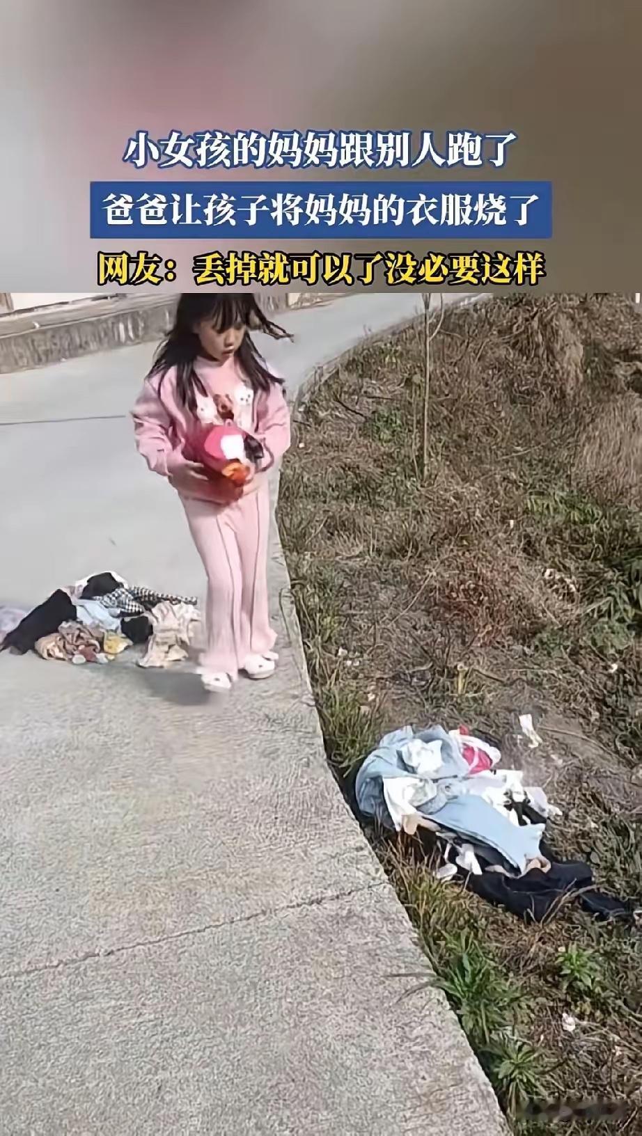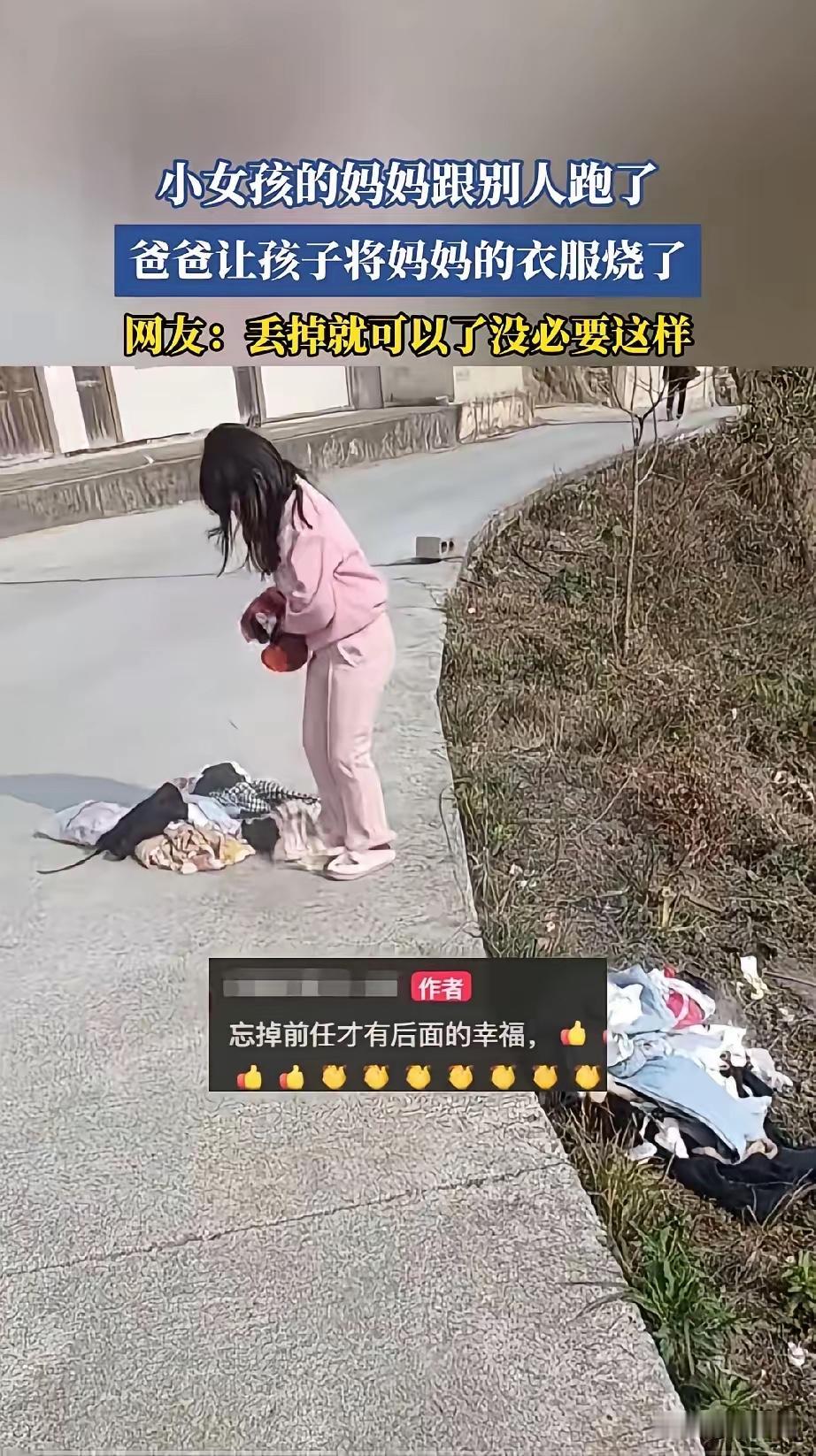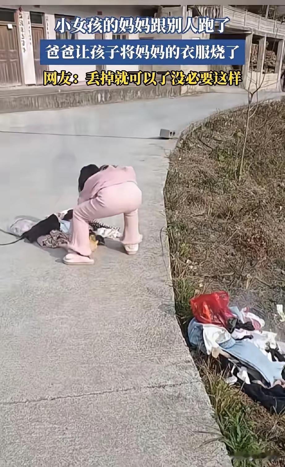 贵州一男子因老婆出去务工跟人家跑了,然后就叫女儿将老婆的衣服拿到家门口去烧。女儿应该有五六岁这样,可能并不了解为什么要烧妈妈的衣服,但父亲叫她烧她就听话烧了。事情发到网上后,网友纷纷指责男子,将衣服扔掉就可以了,为何让孩子面对这种问题,让孩子去烧。 昏黄的夕阳把家门口的空地染成一片橘红,五岁的小女孩攥着妈妈的碎花连衣裙,小手被衣角磨得有点痒。她踮着脚把衣服塞进火堆里,火苗“腾”地一下窜起来,舔舐着布料,发出滋滋的声响。爸爸站在一旁,脸上没有任何表情,只是死死盯着跳动的火焰,嘴里还低声念叨着什么,小女孩听不懂,只觉得爸爸的声音冷冷的,和平时给她买糖时完全不一样。火光照亮了她的脸,她伸出小手去烤火,却被爸爸一把拍开:“好好看着,别让火灭了。”她吓得缩回手,乖乖站着,看着妈妈的衣服一点点变成黑色的灰烬,风一吹,那些灰就飘在空中,像一群乱飞的小黑虫。 这段被邻居拍下来的视频,在网上炸开了锅。评论区里,满是对男子的指责。有人说“自己没本事留住老婆,就拿孩子撒气,算什么男人”;有人心疼孩子“这么小的年纪,哪里懂什么怨恨,她只知道妈妈的衣服没了,说不定还会以为妈妈再也不回来了”;还有人说“衣服扔了捐了都可以,非要让孩子亲手烧掉,这是把大人的恩怨,强加到孩子身上”。甚至有邻居出来爆料,说男子自从老婆走后,就整天在家唉声叹气,不是喝酒就是发呆,连孩子的早饭都懒得做,这次让孩子烧衣服,就是心里的怨气没处撒,才拉着孩子当“工具”。 小女孩不知道,自己亲手点燃的火焰,会在心里留下怎样的印记。她只记得,烧完衣服的那天晚上,她半夜哭着醒来,拉着爸爸的衣角问:“爸爸,妈妈的衣服烧没了,妈妈是不是就回不来了?”男子愣在原地,看着女儿满是泪痕的脸,喉咙里像堵了一块石头,半天说不出一句话。他这才意识到,自己一时的冲动,竟让孩子产生了这样的想法。他原本是想借着烧衣服,发泄心里的愤怒和委屈,却忘了,女儿是无辜的,她还在等着妈妈打工回来,给她买新的发卡和裙子。 儿童心理专家看到视频后,直言这种行为对孩子的伤害是不可逆的。五六岁的孩子正处于认知和情感发展的关键期,她会把“烧衣服”和“妈妈离开”强行绑定,甚至会产生自责心理,觉得是自己烧了衣服,妈妈才不回来的。长期下去,孩子可能会变得自卑敏感,不敢轻易相信他人,甚至对“妈妈”这个词产生恐惧。专家还强调,父母之间的矛盾,从来都不应该牵扯到孩子,更不能让孩子成为宣泄情绪的载体,这是对孩子最基本的保护。 有人说,男子也是受害者,老婆的离开让他丢了面子,心里难受可以理解。但理解不代表认同,成年人的世界里,委屈和愤怒是常态,可处理情绪的方式,却能看出一个人的担当。他完全可以把衣服打包扔掉,或者捐赠出去,用一种平和的方式告别过去,而不是选择最极端的那一种。更何况,他身边还有一个需要呵护的女儿,他应该做的,是告诉孩子“妈妈只是暂时离开,爸爸会好好陪你”,而不是让孩子亲手毁掉和妈妈有关的念想。 事情发酵后,当地的村委会也找上门来,和男子聊了很久。村干部说,男子的老婆出去务工,原本是想多赚点钱,改善家里的生活,后来和他断了联系,可能也有自己的苦衷。他们还帮男子联系了心理辅导,希望他能尽快走出阴霾,好好照顾女儿。男子低着头,红着眼眶说:“我错了,不该让孩子烧衣服,我以后会好好对她,等她长大了,我会跟她道歉。” 父母的言行,就是孩子的镜子。你用什么样的态度对待生活,孩子就会用什么样的眼光看待世界。夫妻之间的恩怨,不该成为孩子成长路上的绊脚石。真正有担当的父母,会把所有的风雨都挡在门外,只给孩子留下一片晴空。 各位读者你们怎么看?欢迎在评论区讨论。