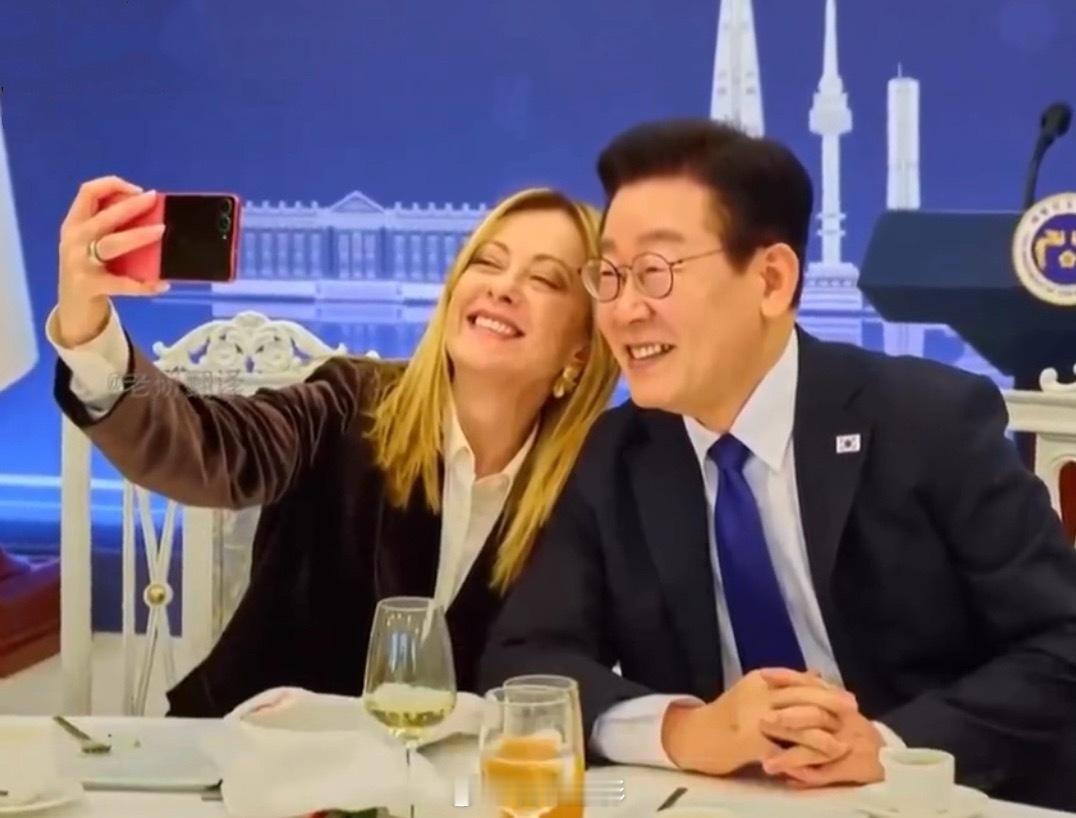 🇰🇷🇮🇹李在明与梅洛尼自拍。海外新鲜事