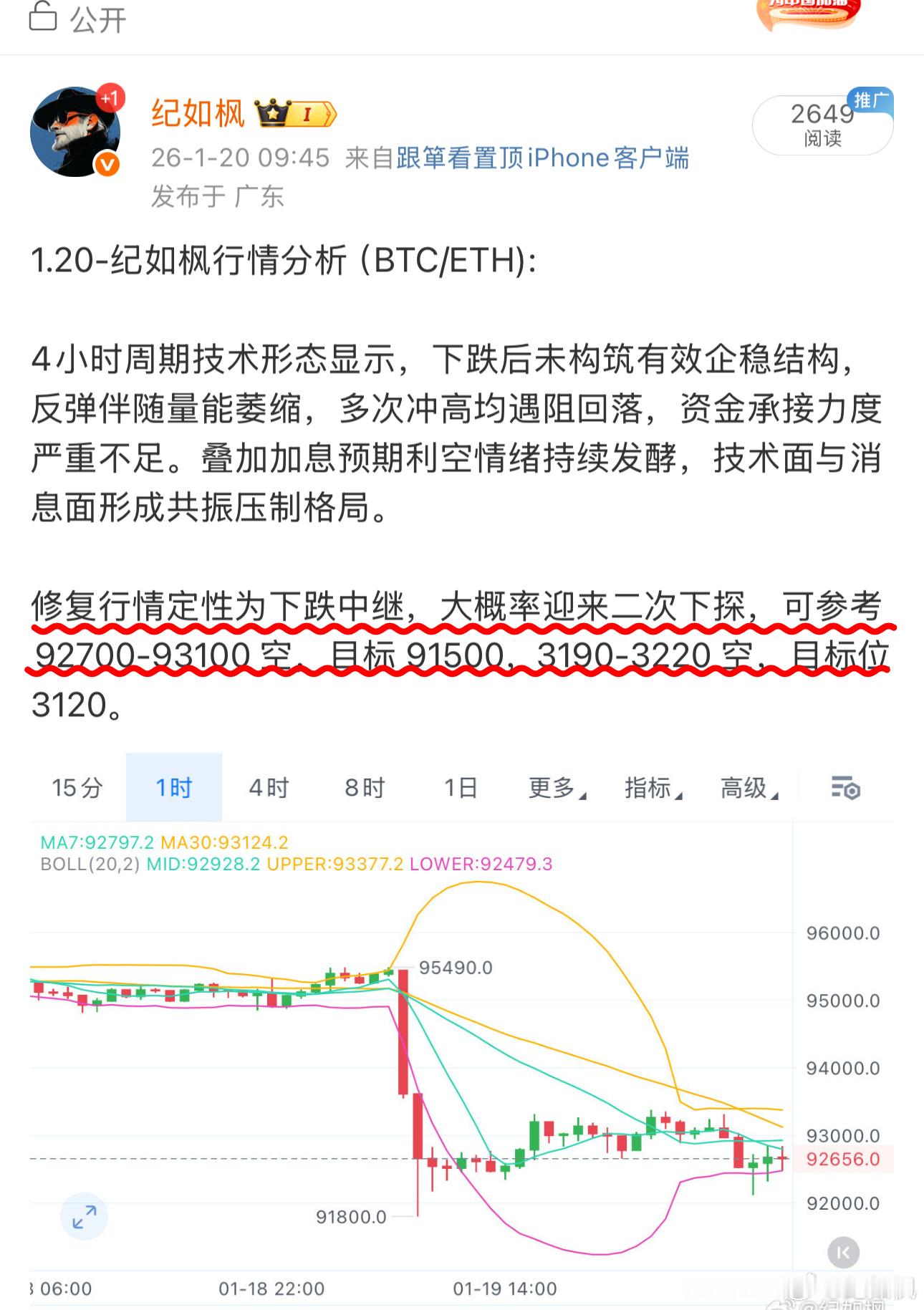 1.21-纪如枫行情分析(BTC/ETH):日线级别来看,彻底跌穿,单日跌幅50