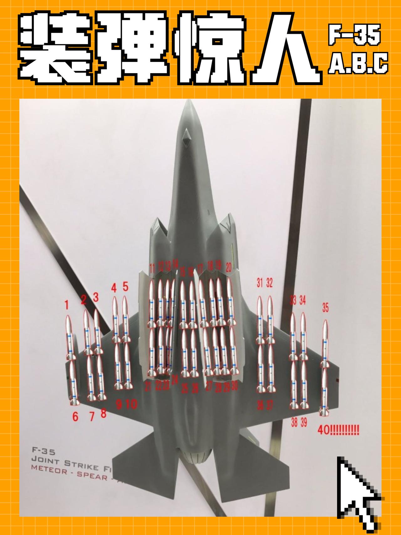 F-35 导弹搭载配置差异 隐身与火力的取舍 作为全球量产规模最大的五代机之一,F-35 系列的导弹搭载方案,直接关联其隐身突防与火力打击的核心性能。 ①F-35A 作为空军常规起降型号,采用 4 内置 + 4 外置的均衡配置。内置弹舱可容纳中远程空空导弹,满足隐身作战需求,外置挂架则能搭载对地攻击弹药,提升多任务能力。 ②F-35B 及同改型侧重短距 / 垂直起降,受限于机身空间,内置弹舱缩减至 2 枚容量,6 个外置挂架成为火力补充,不过外置挂载会大幅削弱隐身性能。 F-35 不同型号的导弹配置差异,是根据军种作战需求,在隐身特性与火力输出之间做出的针对性设计权衡。