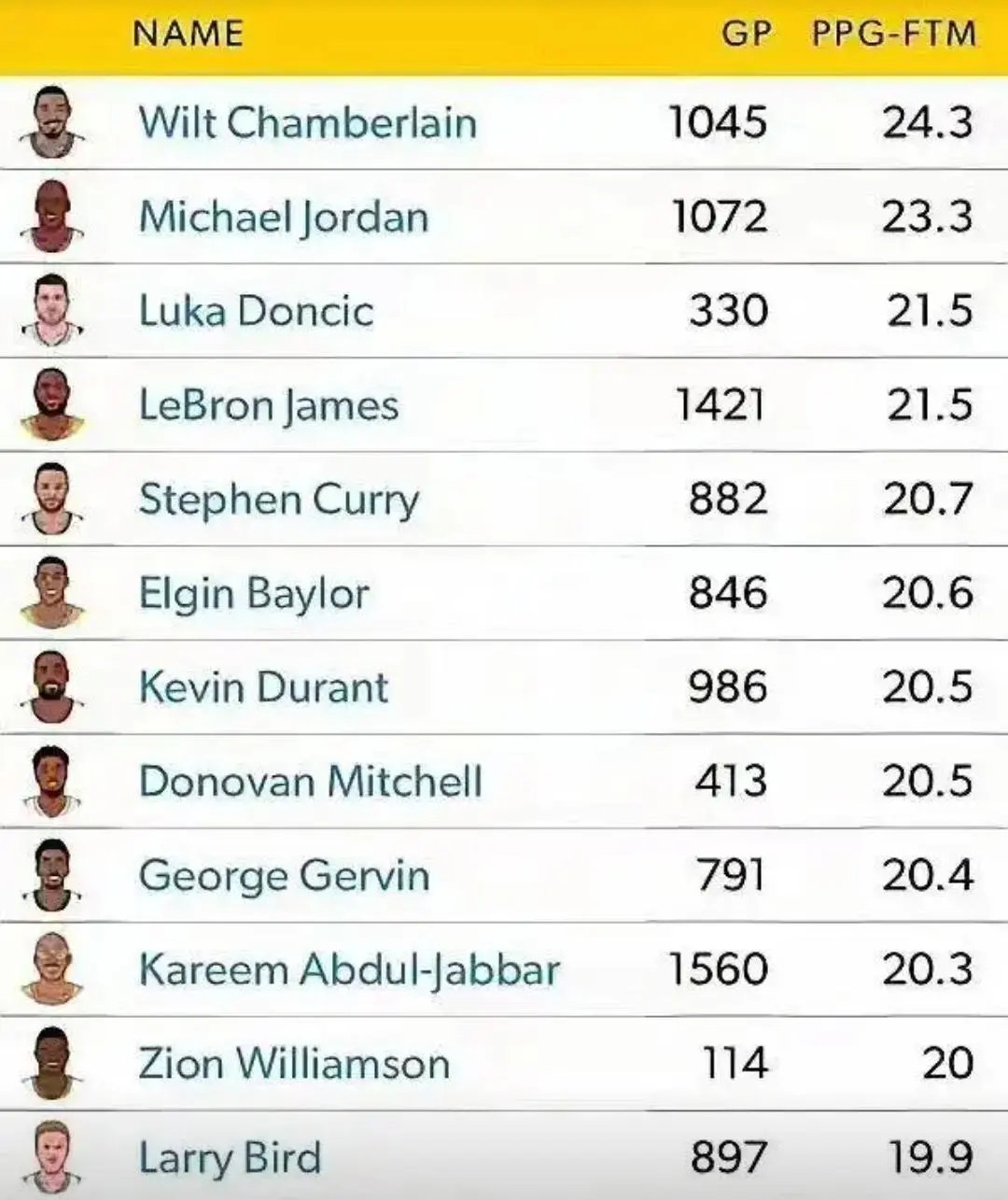 去掉罚球之后的生涯场均得分,詹姆斯历史第三!!!詹姆斯连续21年入选全明星首发纪录终结