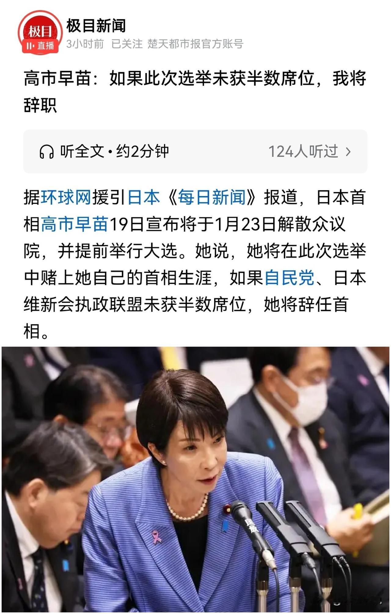 别让高市早苗“跑了” 高市早苗称“如果此次选举未获半数席位,我将辞职”,从目前的情况来分析,日本的经济和通货膨胀高市早苗已经无力回天,这就做好了“跑路”的准备。 而高市早苗之所以要“跑”就是希望新一届政府能够修复与中国的关系,同时改善经济与通货膨胀的压力,然而不能让高市早苗就真的“跑了”,无论任何政党上台,都要让日本认识到历史错误,同时真诚悔过。