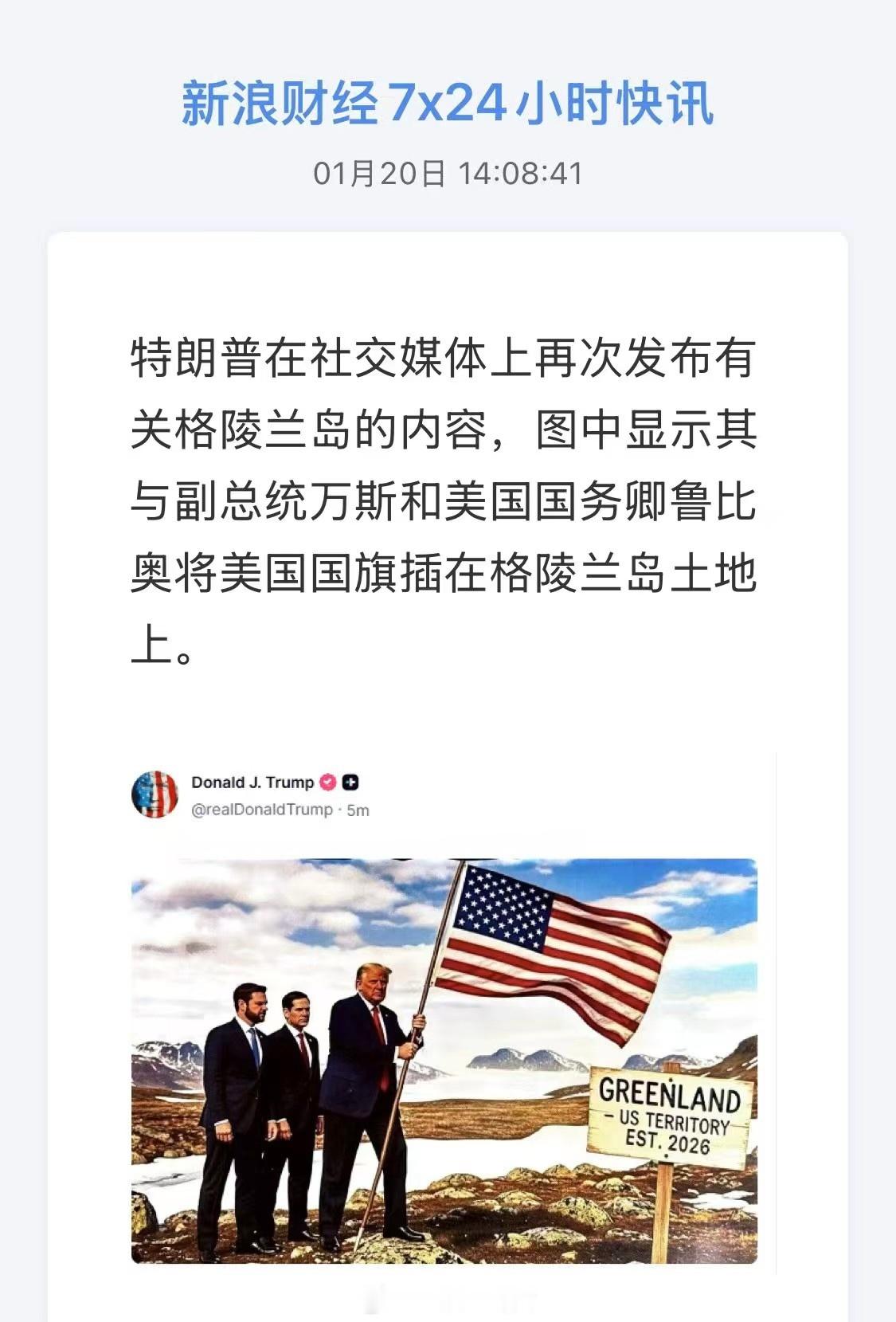 特朗普发布登上格陵兰岛的图片