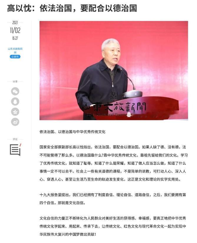 这是一条特殊战线上的大老虎,因为长期在国安部门和中央、国务院防范和处理邪教问题领导小组办公室工作,高以忱在网上的信息比较少,除了知道他1972年考入黑龙江大学俄语系外,连年龄也搜不到。可能主要因为他长期在国外工作,回国后职位较高信息较少。这是一个副部级的老虎,年龄应该在72岁左右,退休后还发起成立中华炎黄文化研究会文明传承委员会,而且口口声声到处说什么以德治国,原来他才是最没有德的人,让人叹息。