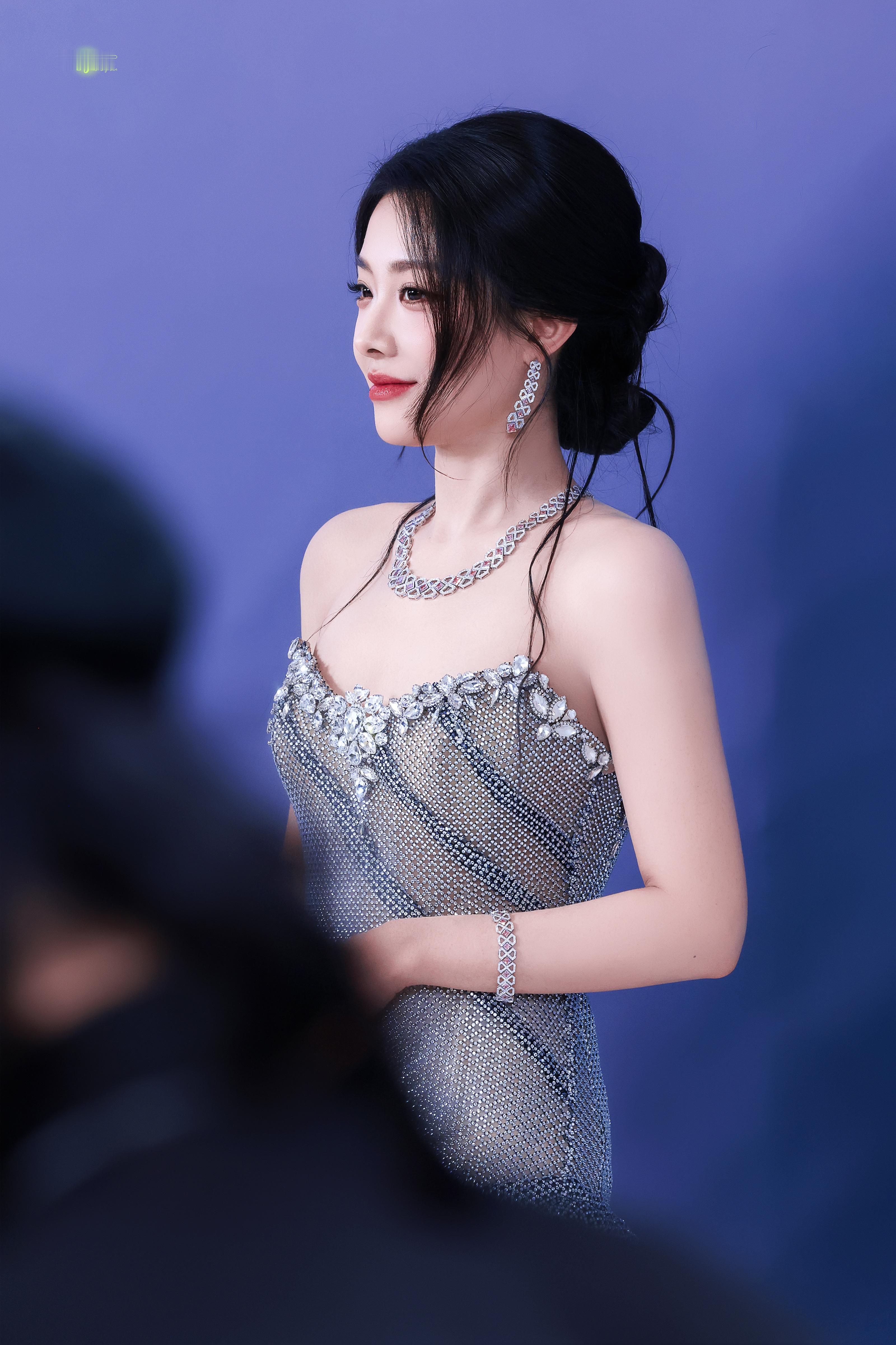 喻言 💎 银钻抹胸长裙勾勒出曼妙曲线,清冷红唇自带疏离又勾人的气场,美得惊艳又高级。
