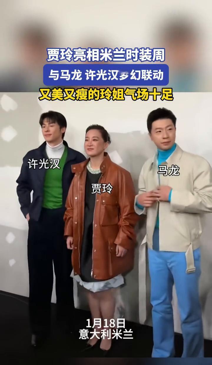 贾玲瘦了,但米兰时装周的风头,全被她一个人抢走了。 皮衣短裙,干练利落。 她站在马龙和许光汉身边,气场丝毫不输。 这哪是减肥成功,这分明是换了个人生剧本。 网友的评论炸了。 不是夸她瘦了多少斤,而是说“终于看到了健康美”“自信才是最好的妆容”。 你看,大众早就厌倦了白幼瘦的单一审美,贾玲用行动证明,力量感和生命力,才是最高级的性感。 更狠的是,她没在米兰当花瓶。 连续参加多场活动,和国际设计师谈笑风生。 外媒镜头追着她拍,标题里写着“中国明星的时尚突围”。 这哪是亮相,这分明是宣告:我的舞台,从来不止于喜剧。 所以别再问她瘦了多少斤。 该问的是,当一个人找回自己的掌控感,她能掀起多大的风浪。 贾玲这次,给所有女性上了一课:真正的蜕变,从来不是体重秤上的数字,而是你站在世界面前时,那份从容不迫的底气。