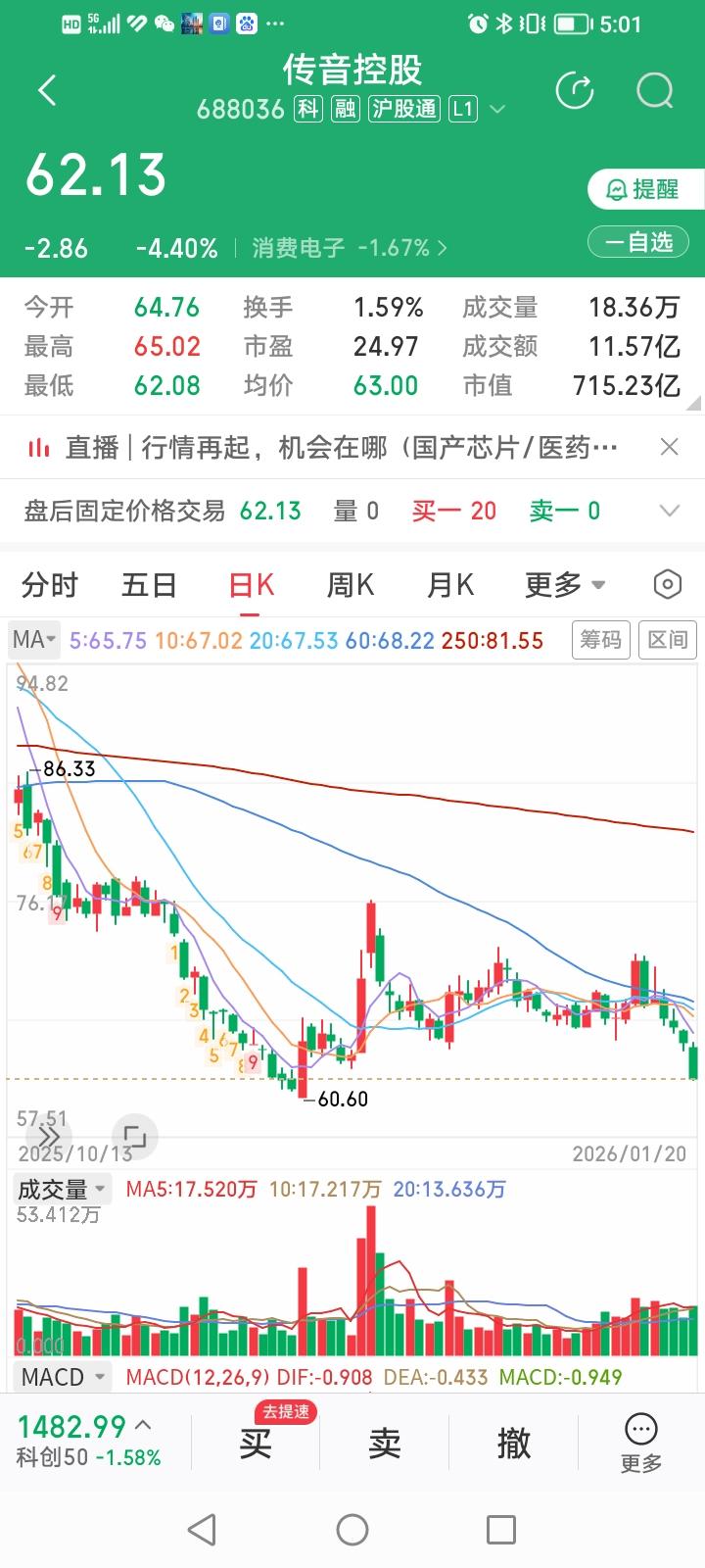 分析好,大有益,有耐心,称第一! 就拿咱操作城投控股和传音控股这两只股票来说吧。2026年1月6号买入城投控股后,昨天城投控股又跌回到了我的成本价,咱一冲动又想趁它昨天小幅冲高把它卖了。后来仔细看了一下它的K线图,发现它已经完成了对年线的回抽确认,怎么还能卖呢?就果断撤单了。结果今天直接涨停。 传音控股是A股唯一一家手机整机制造及销售上市公司,股价从2025年9月份的104.9元跌到60多元,咱一直想抄底,后仔细看了一下它的财务指标,发现它的主营业务收入从2016年的116亿元增长到2024年的687亿元,增长幅度较大,似乎遇到了增长瓶颈。就没有敢建仓,结果今天大跌4.40%,股价收盘价又创出了近三年的新低。 还有咱持有的中国平安、云南白药、万华化学、中国中免等已经持有了两年以上了。 看来学会冷静理性分析并耐心等待和持有这两门功课,真的对炒股很有点用处。