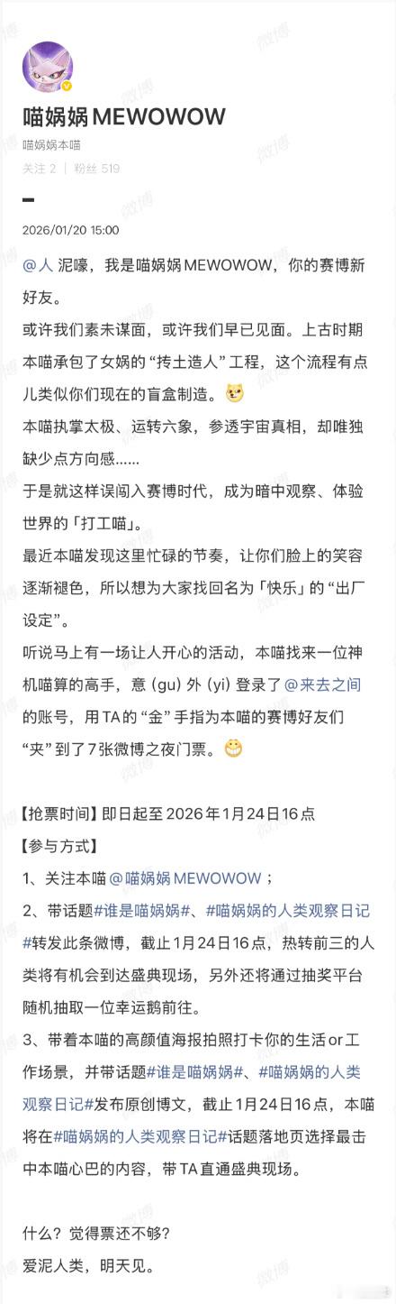 十二生肖没有猫的遗憾被弥补了 我们的赛博好友来了呀,好喜欢喵娲娲MEWOWOW 能够给我们送票的呀,希望我能够拥有啊!